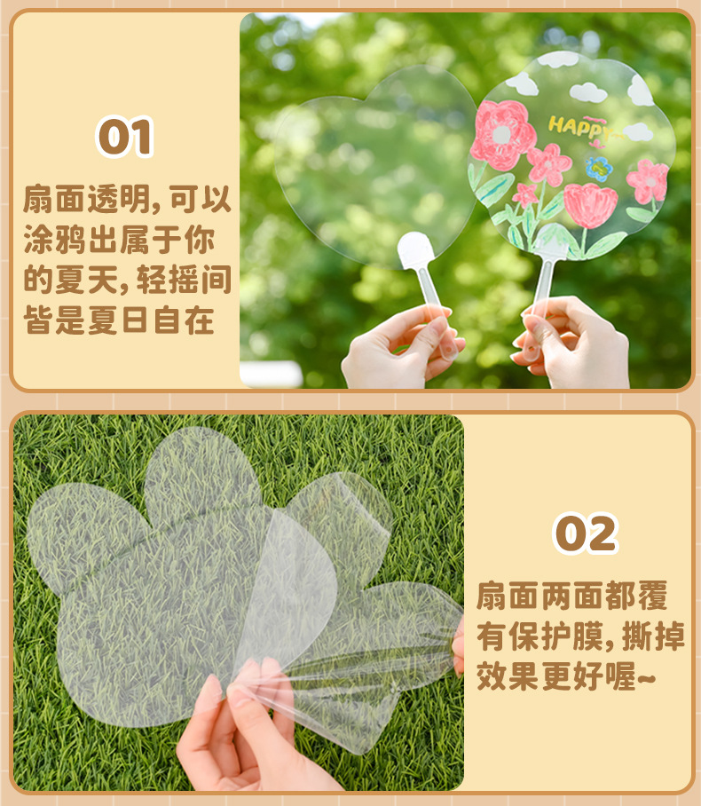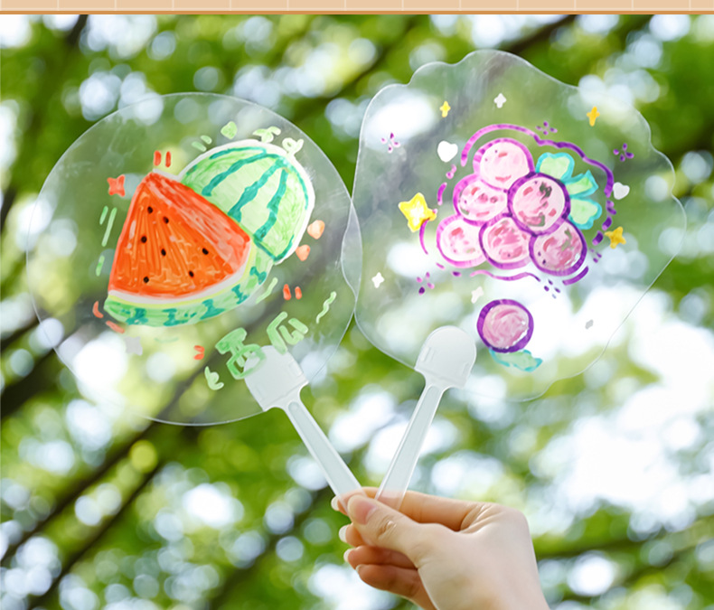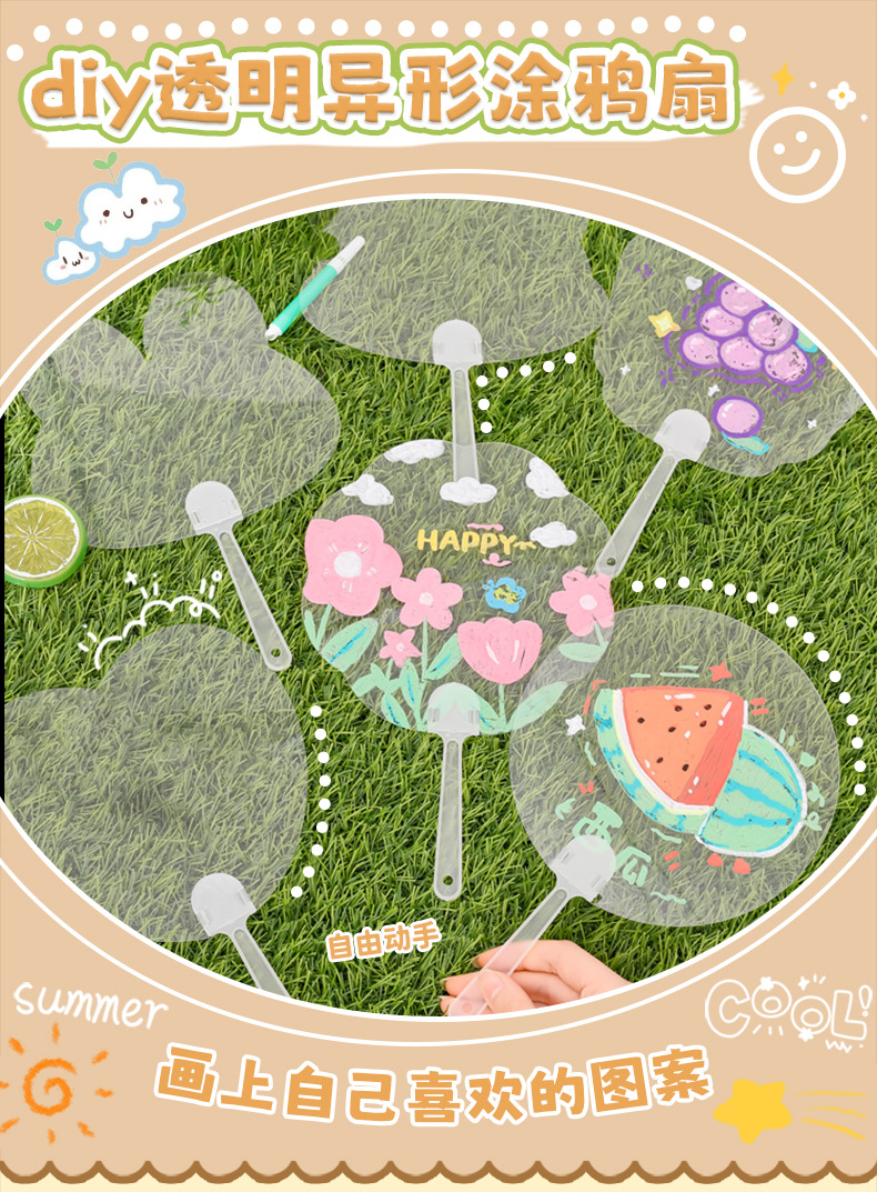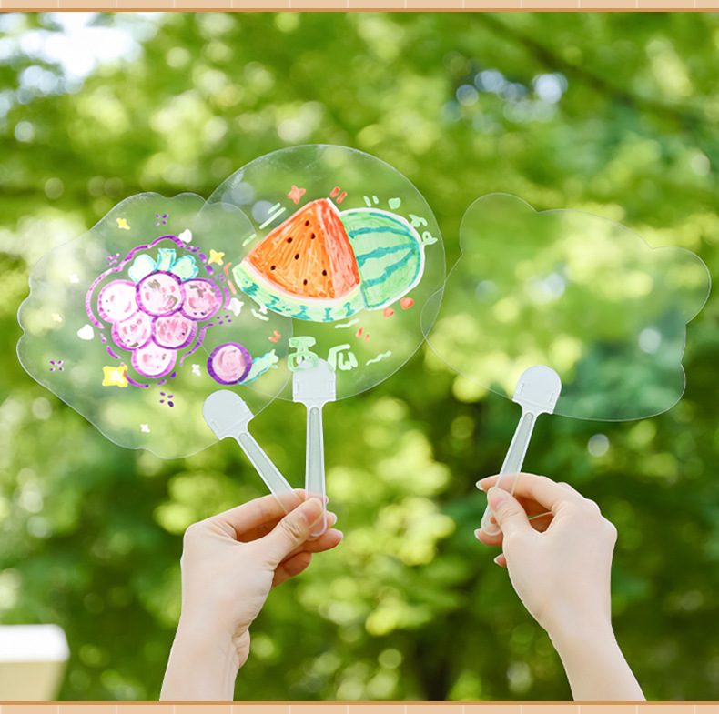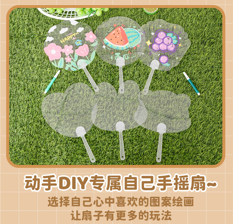 Diy透明扇子空白プラスチック扇子手作り児童落書き画姑カード団扇幼稚園夏美術