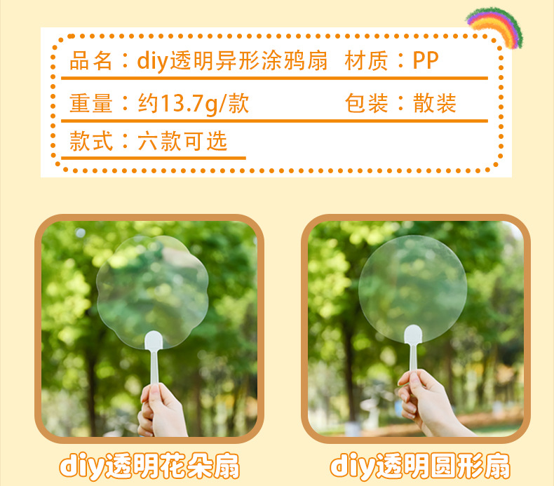 クリエイティブDIY透明落書き扇子供空白手描き落書き扇小扇子幼稚園プレゼント異型扇