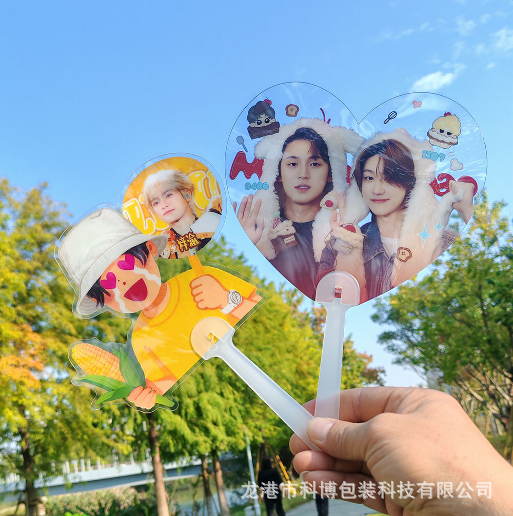 爱心卡通异形透扇定 制明星应援透明扇PP双面动漫大头扇子定 做