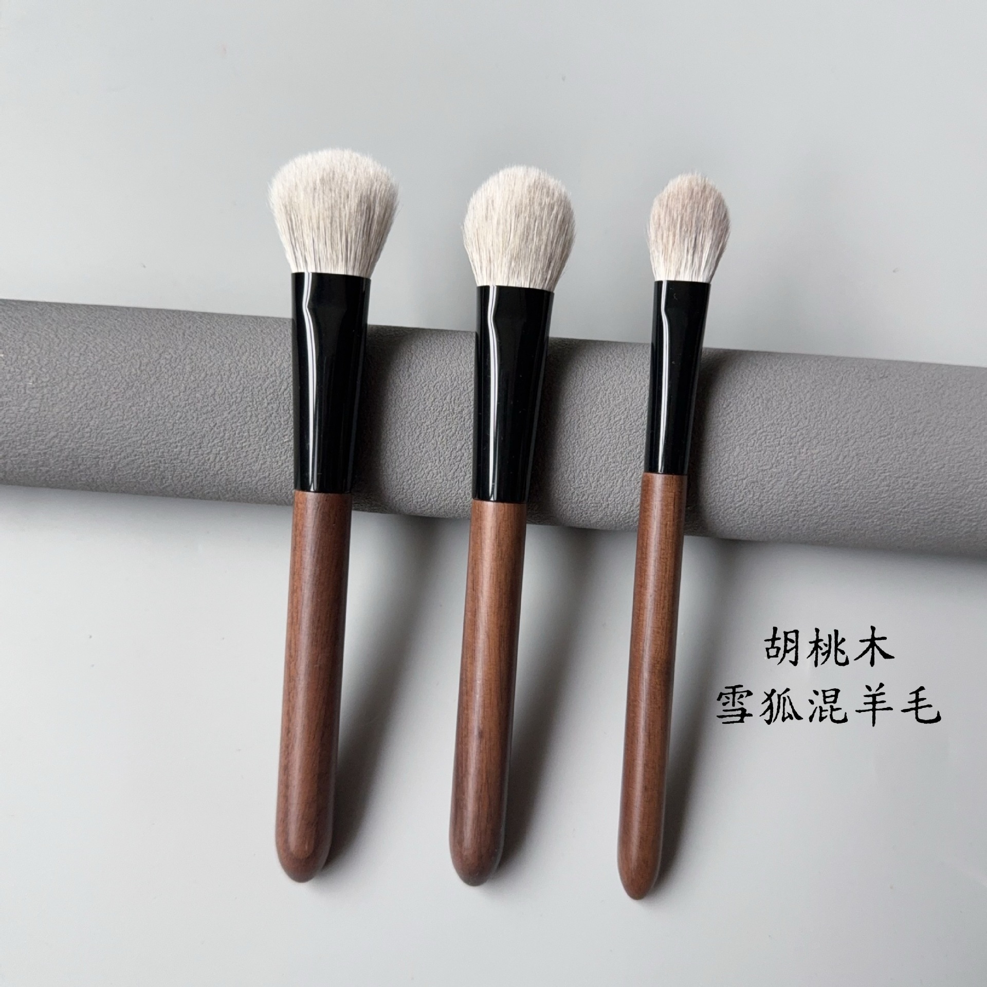 胡桃木雪狐混羊毛坡型腮红刷桃心高光刷眼下定妆刷沧州化妆刷