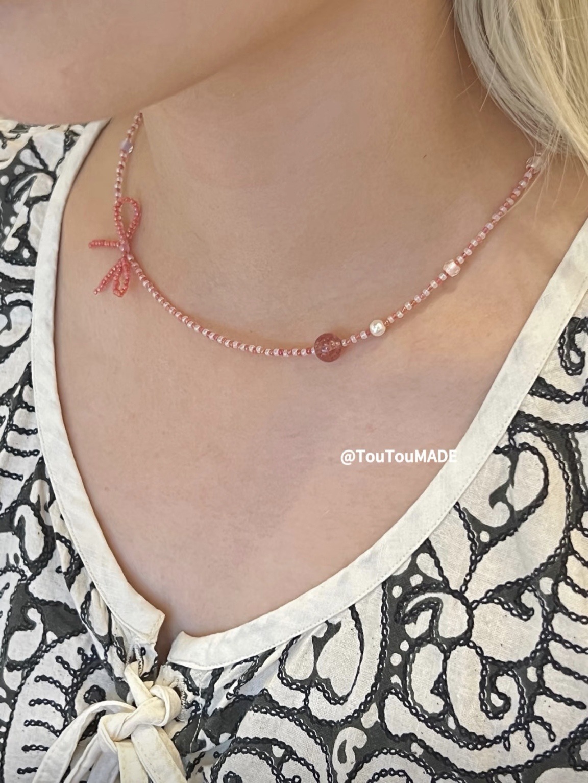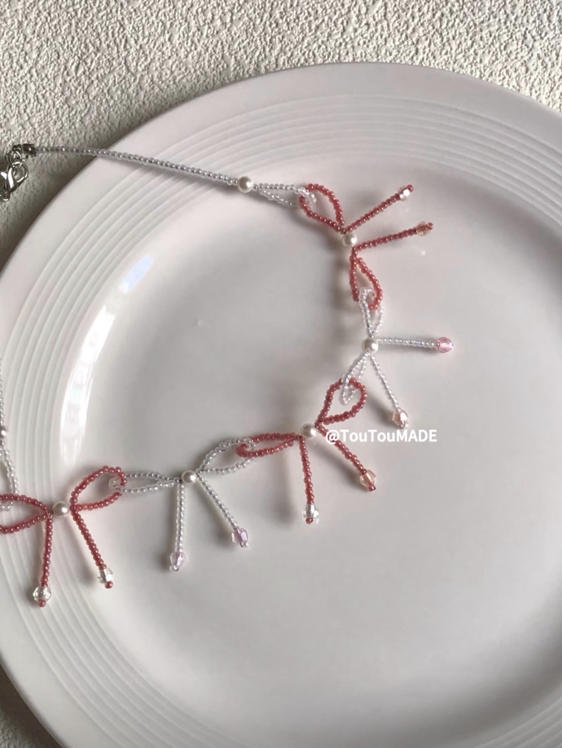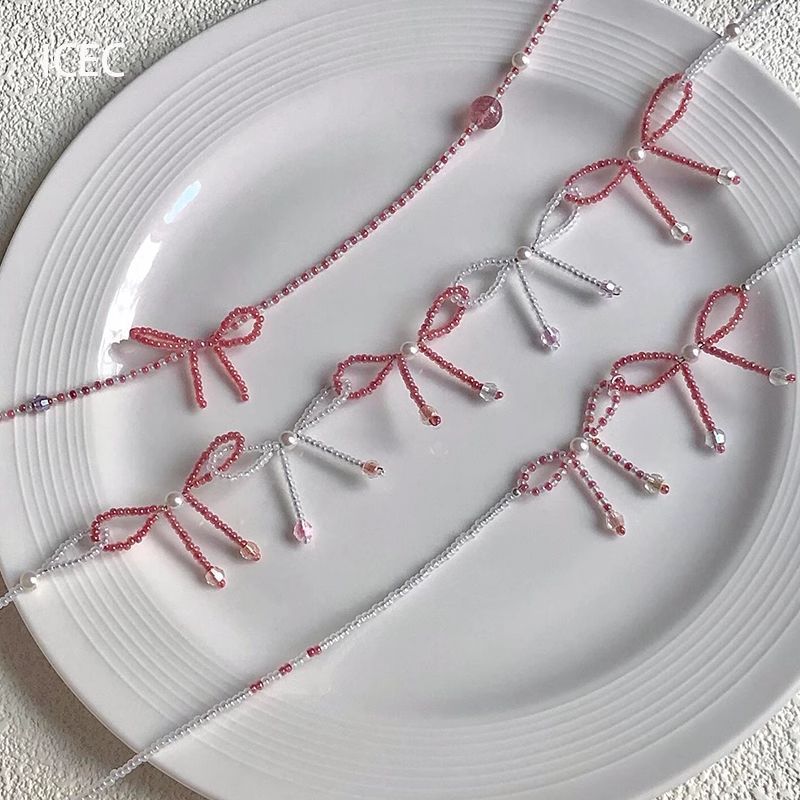 超仙米珠串珠蝴蝶结项链学生党仙女风简约颈链女千金感小众锁骨链