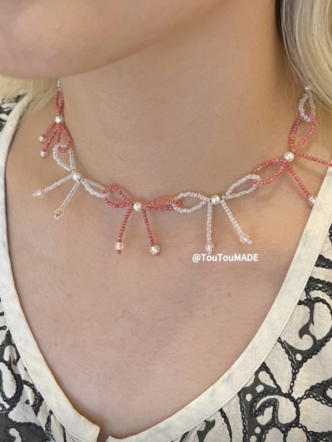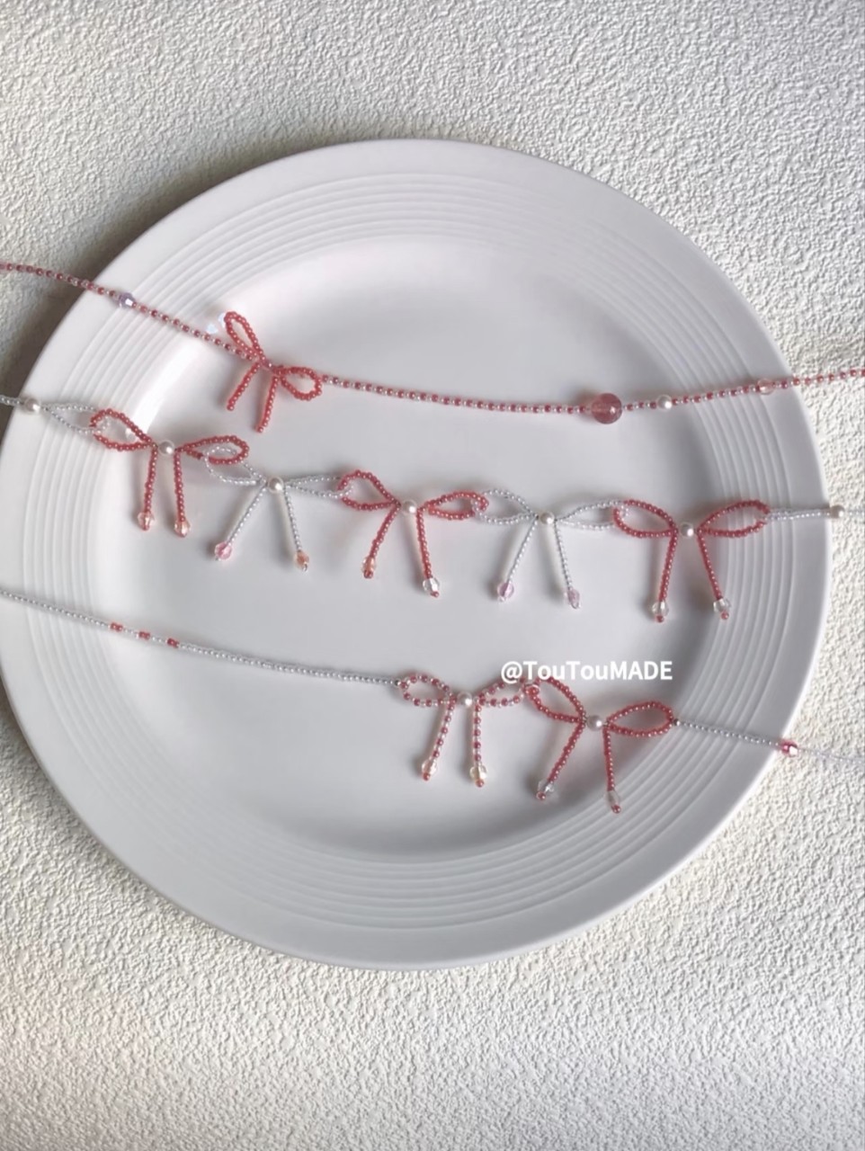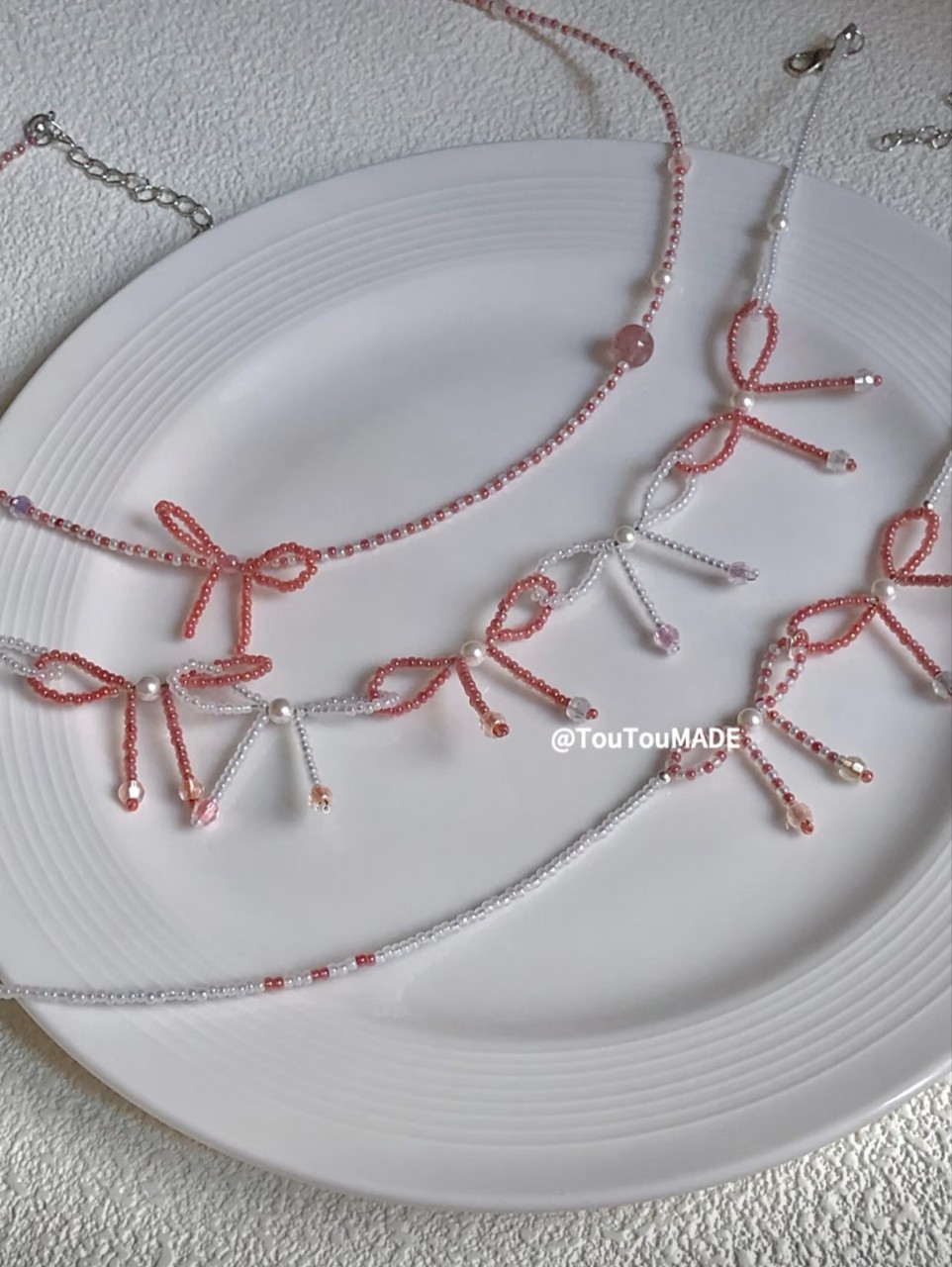 超仙米珠串珠蝴蝶结项链学生党仙女风简约颈链女千金感小众锁骨链