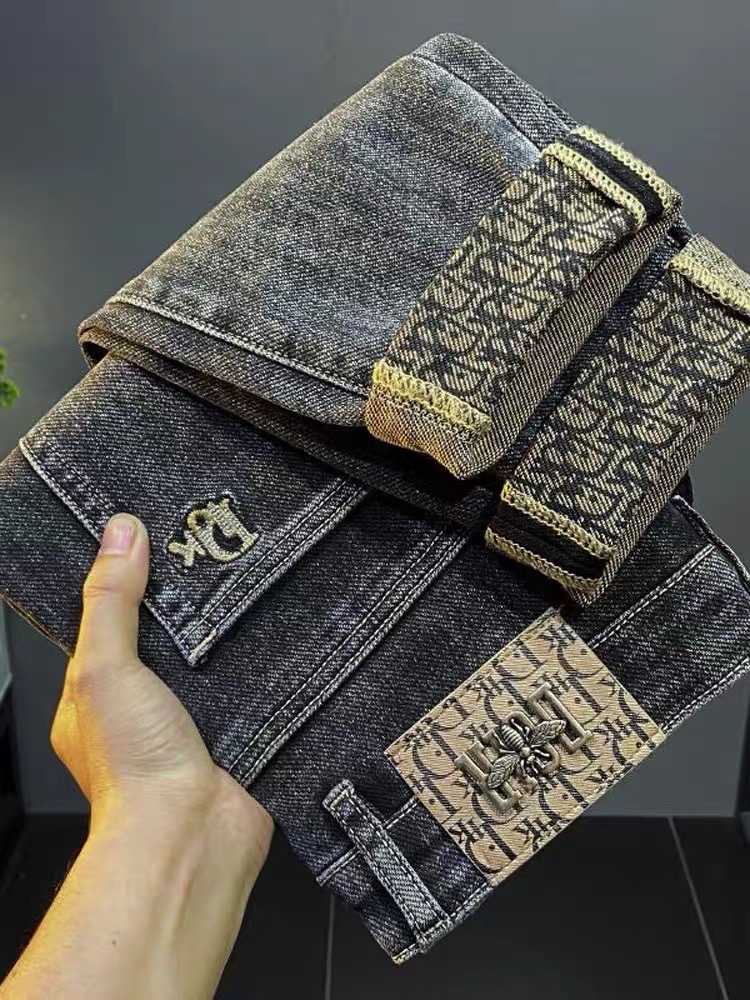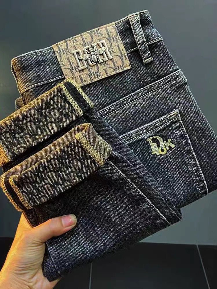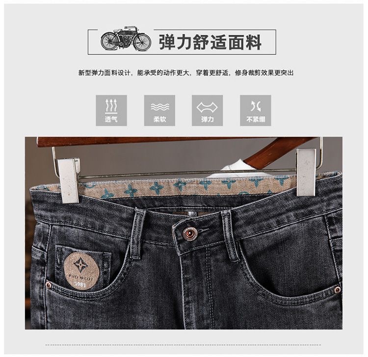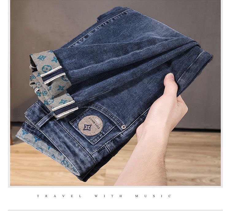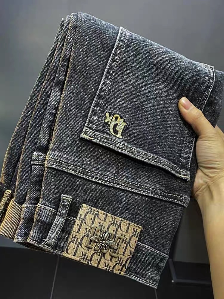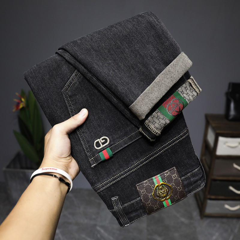 ライトラグジュアリーメンズジーンズメンズストレッチスリムストレート刺繍プリント秋カジュアル多用途小足ロングパンツ