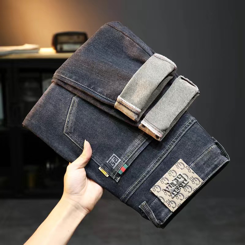 2025新款牛仔裤男士修身小脚秋冬季加绒加厚男裤广州新塘男款裤子