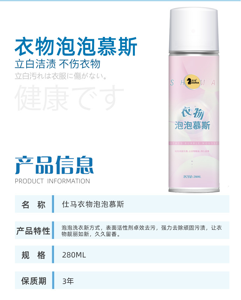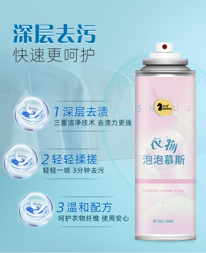 Shima 衣類バブルムース洗濯ドライクリーニングムースクリーナー肌に優しい香りの洗濯洗剤卸売家庭用