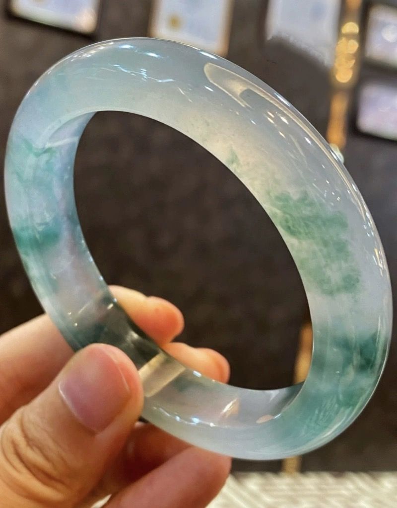 天然ミャンマーの古い坑a商品の翡翠の腕輪の氷のモチの種の油の青い色は花の浅い陽の緑色の翡翠の玉の腕輪の子を漂っています。