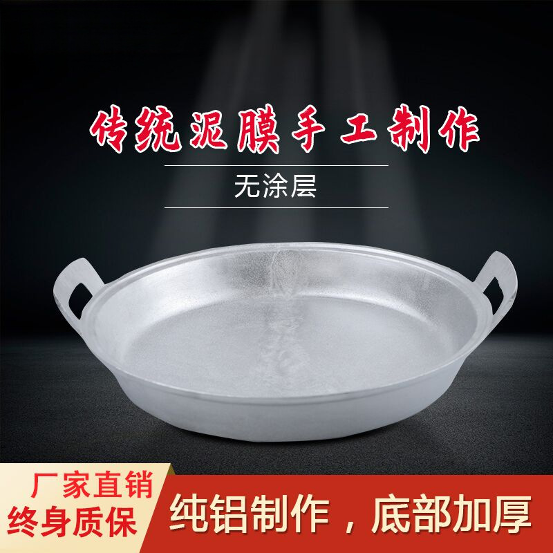 铝平底锅小号煎锅老式加厚吕锅家用双耳平底锅纯手工铝锅不粘批发