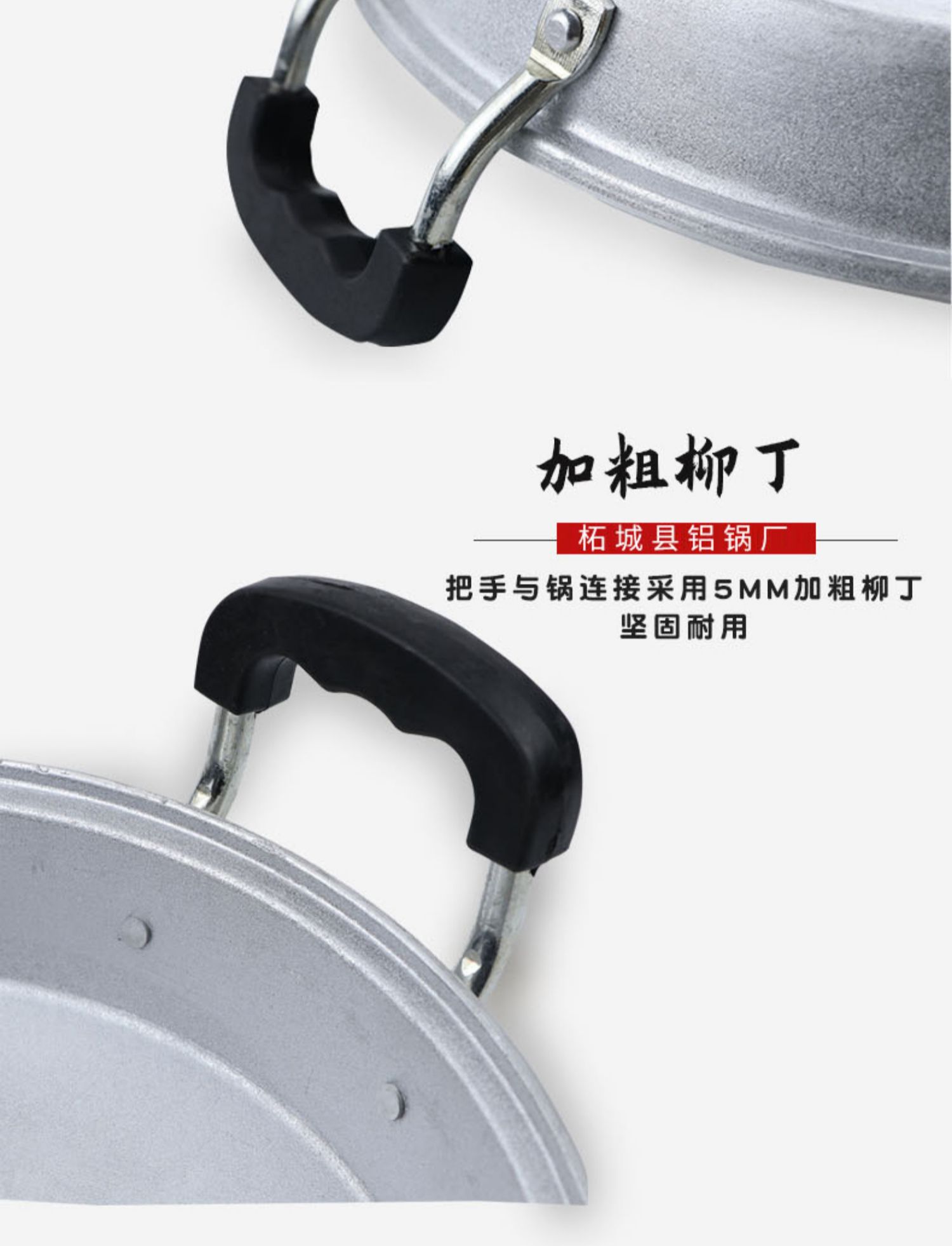 旧式のアルミフライパンのフライパンを厚くしました。中国式のコーティングなしの純粋なアルミ製の焼き餅鍋の水フライパンを厚くしました。