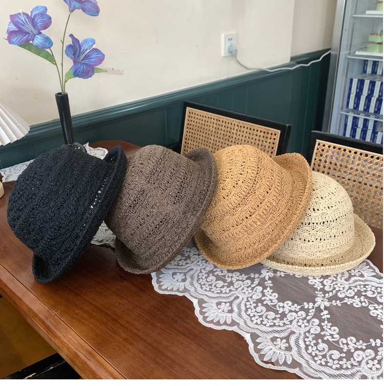 帽子韓国スタイルの新しい中空ニット漁師の帽子女性の夏軽量通気性多用途日よけ帽子日焼け止め日よけ帽子
