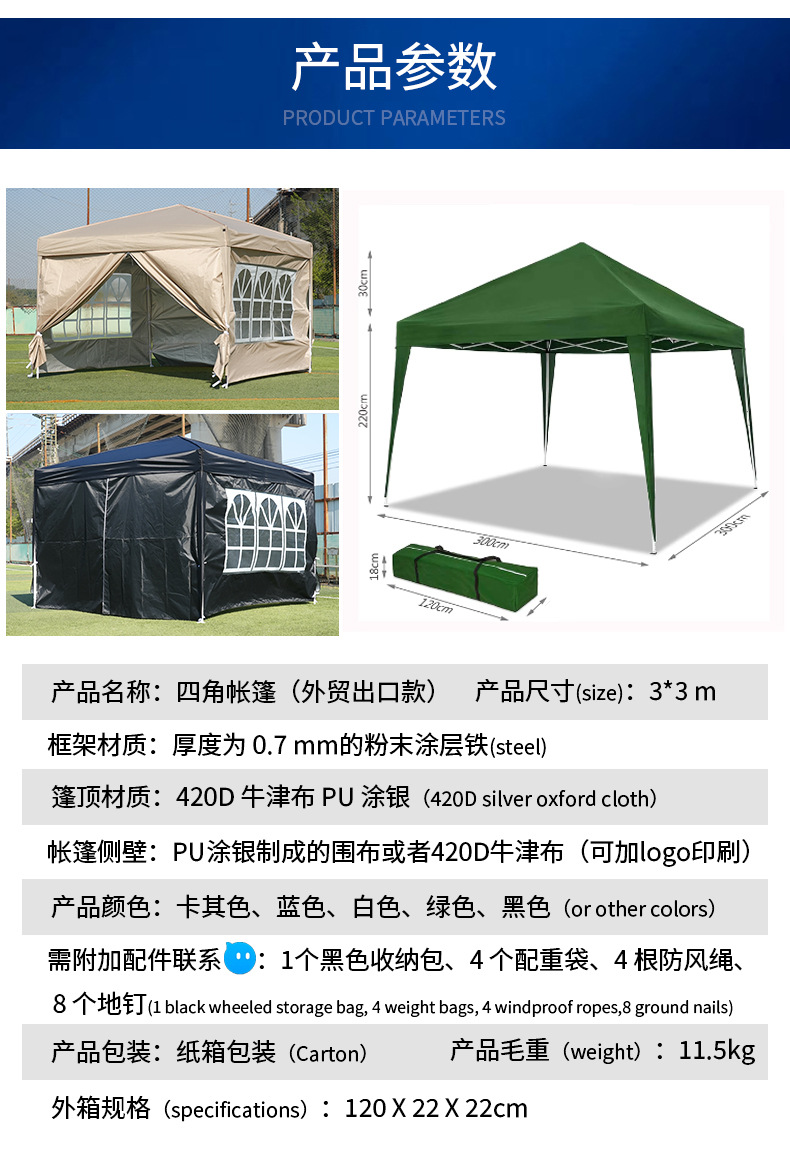 四角屋外テント広告3*3伸縮折り畳み日除け傘四脚傘棚駐車防雨棚露店