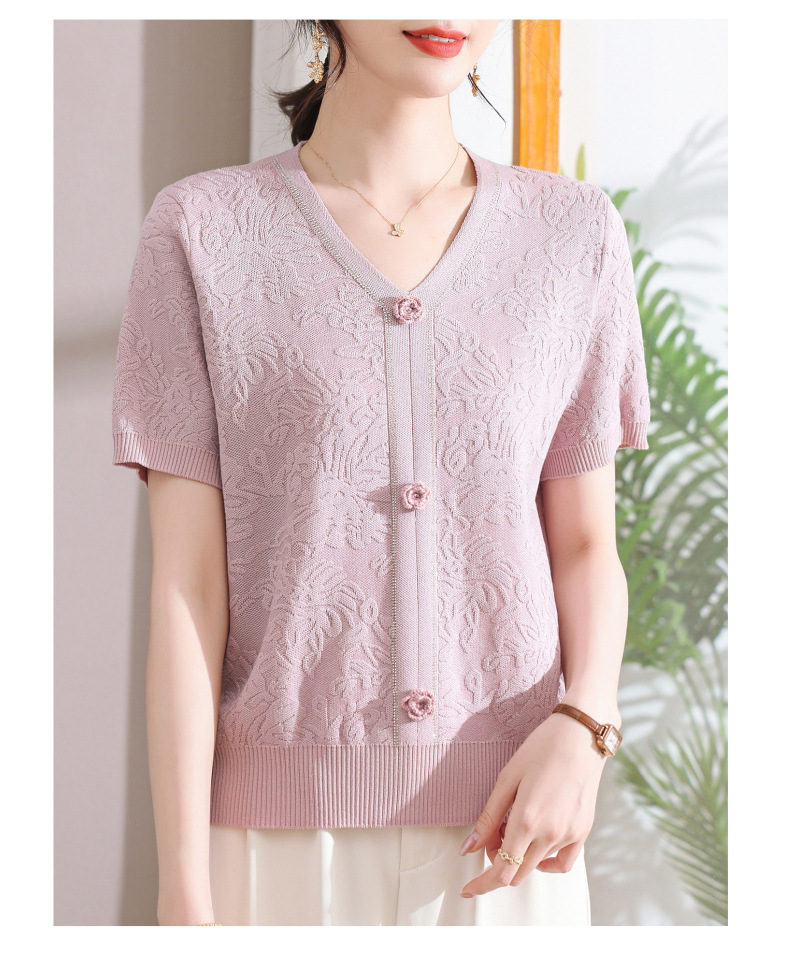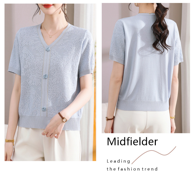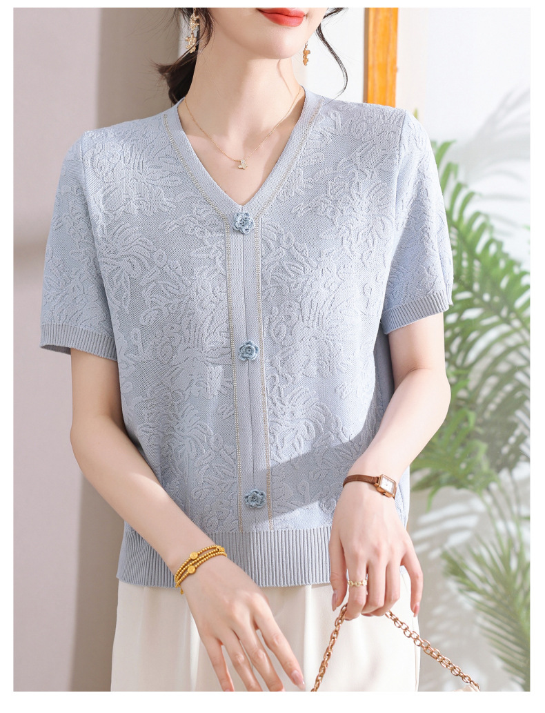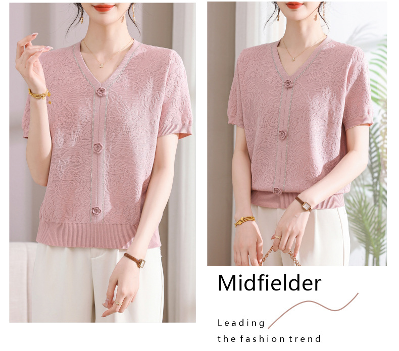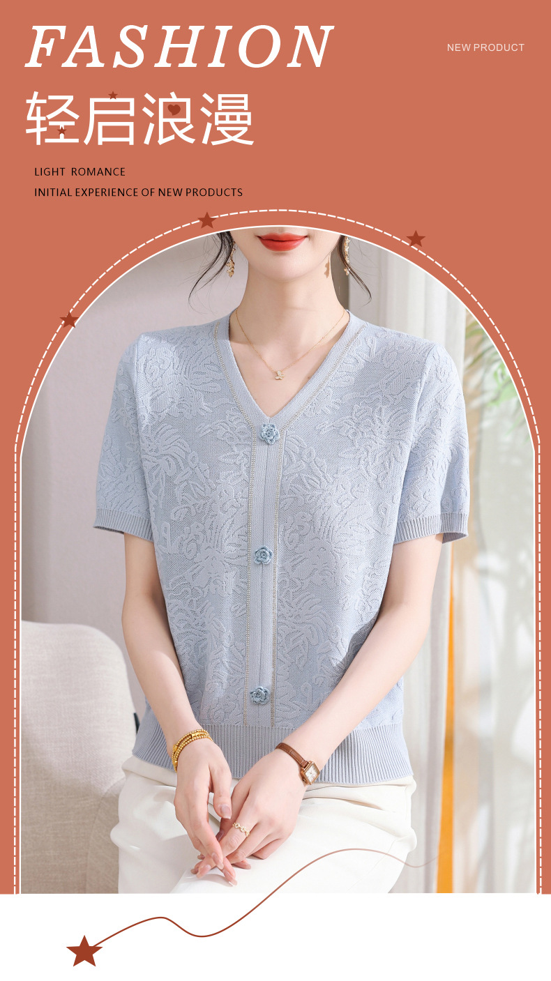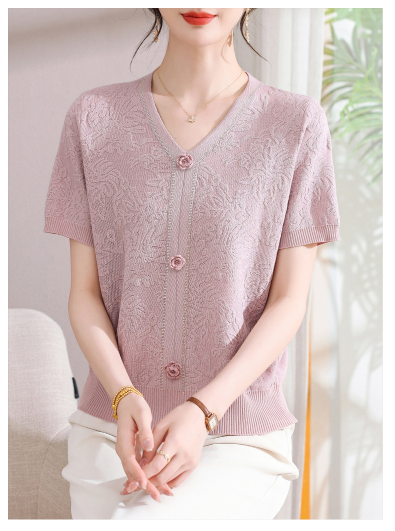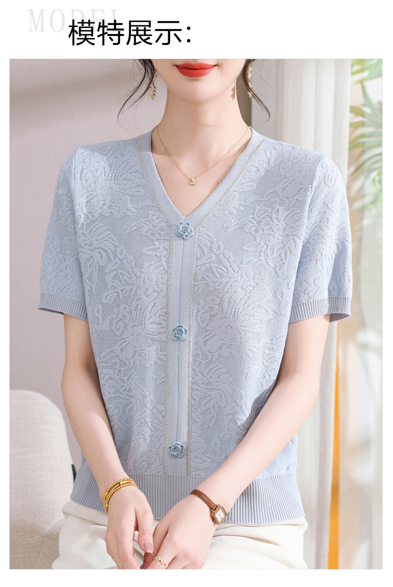 中年のお母さんの秋の服のニットの小さいシャツの新型の洋気の卸売り2025新型の中高年の春秋の半袖の底のシャツ