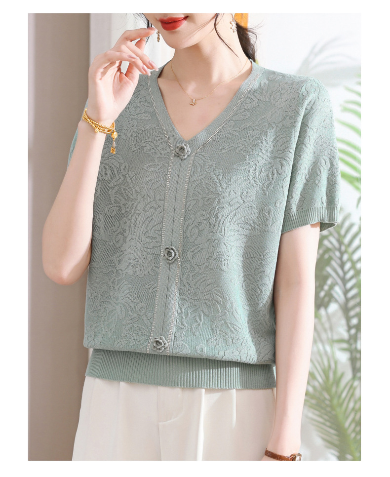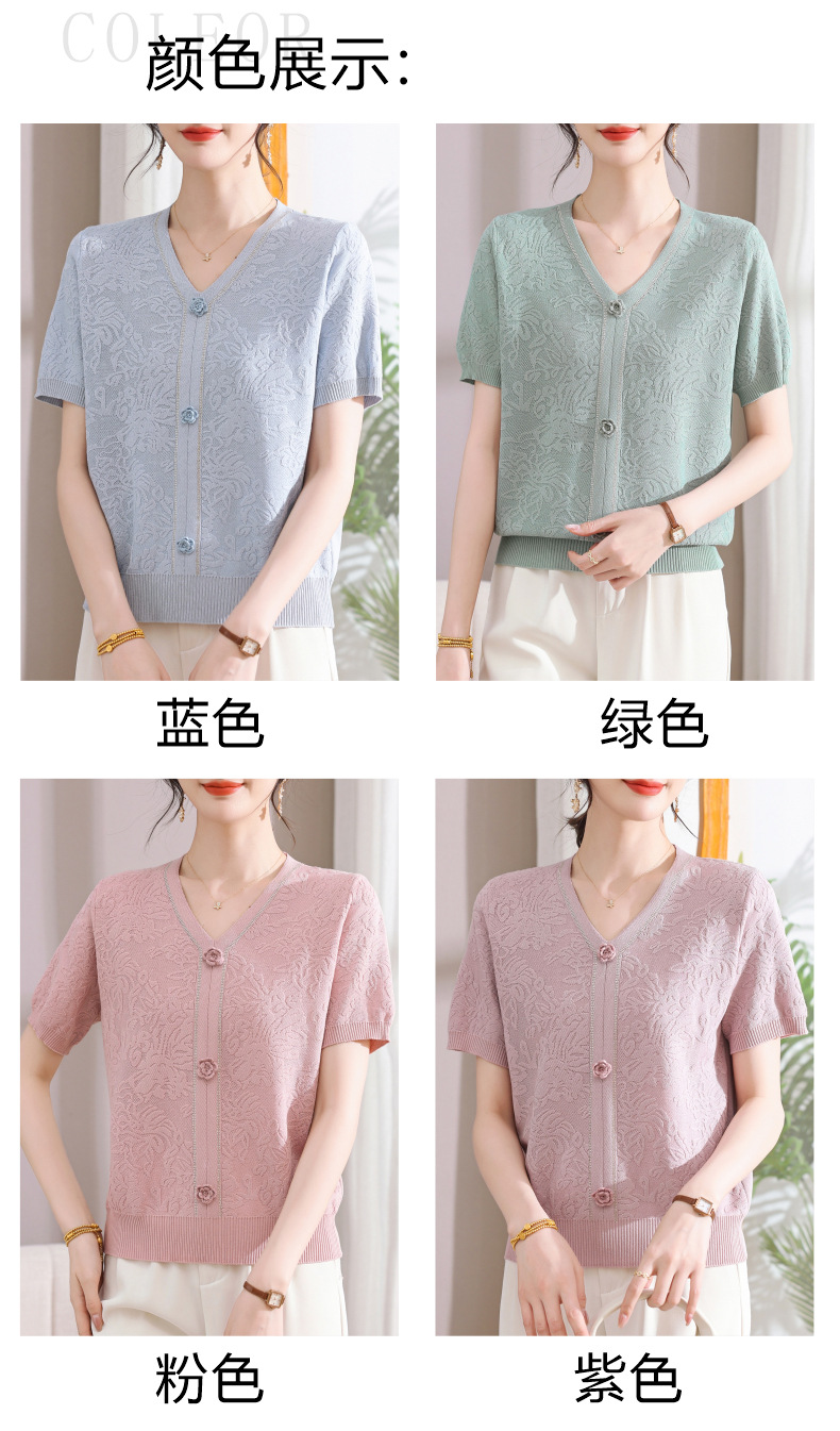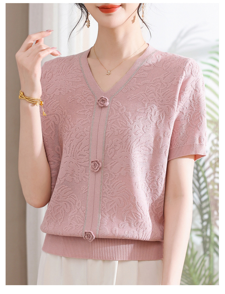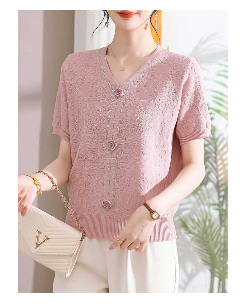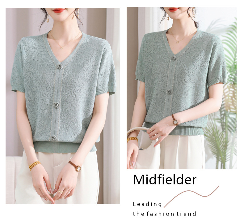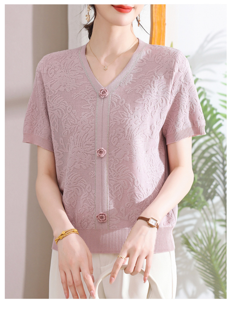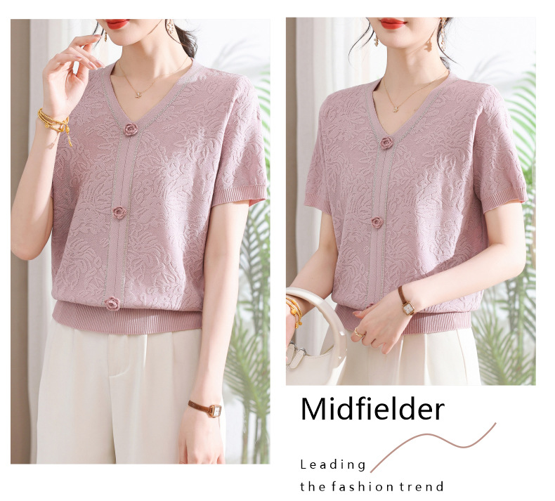 中年のお母さんの秋の服のニットの小さいシャツの新型の洋気の卸売り2025新型の中高年の春秋の半袖の底のシャツ