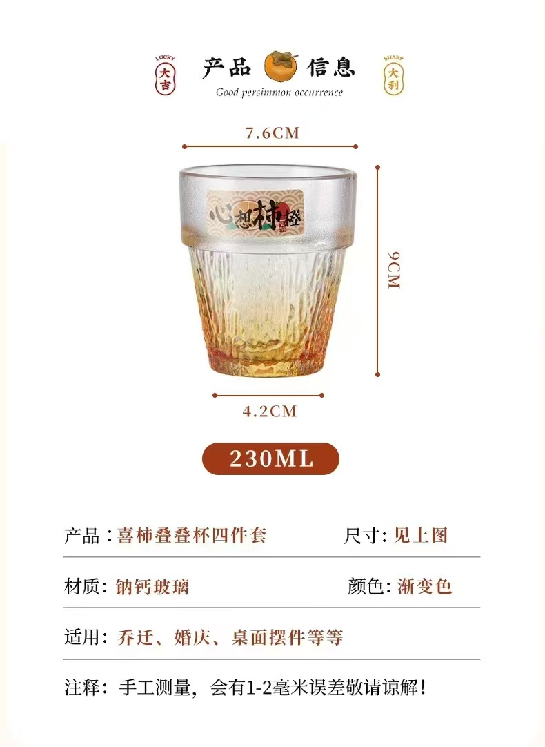 Xishi スタッキングカップ 6 セット ガラス カラーボックス 販売部福利厚生顧客へのギフト卸売共同購入
