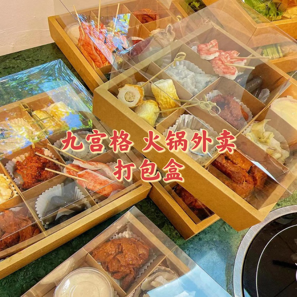 九宮格鍋の出前包装箱使い捨て透明牛皮箱焙煎甜品ハロゲン味果物包装箱