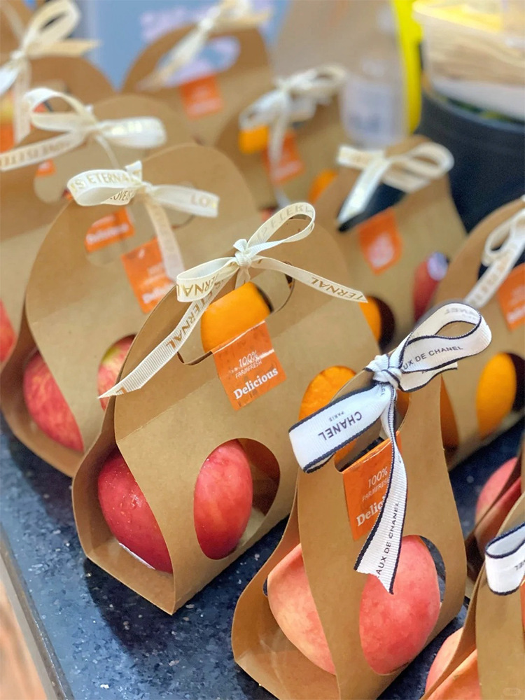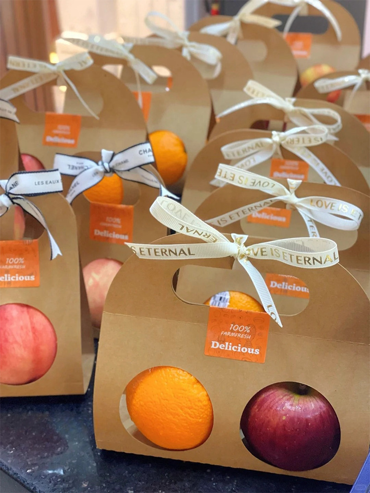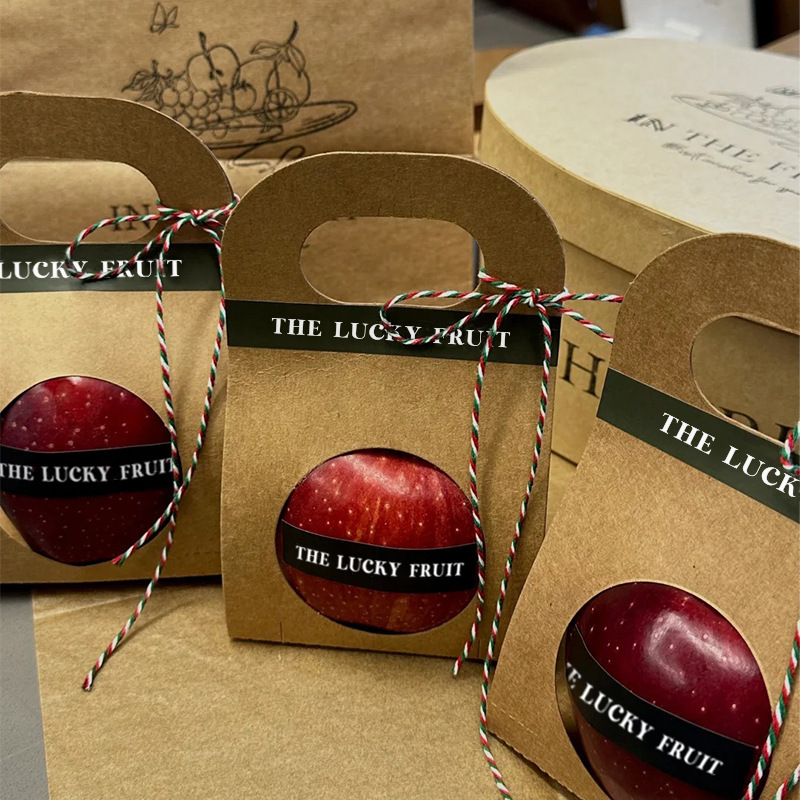 水果包装盒手拎水果套单双个橙子圣诞苹果手提礼品礼物牛皮包装纸