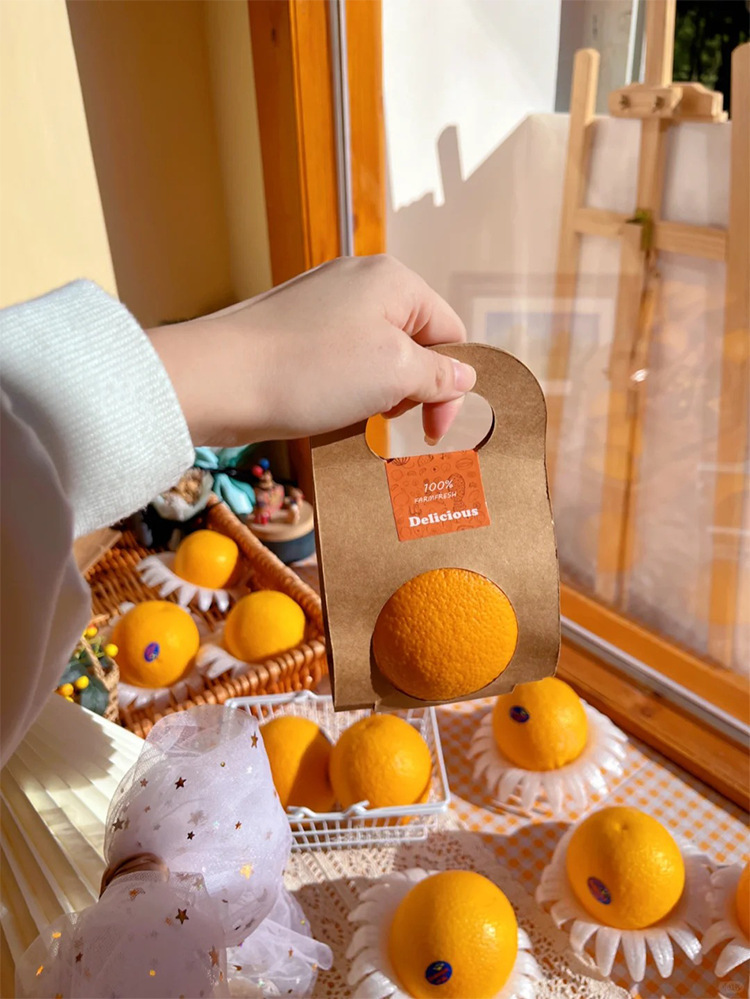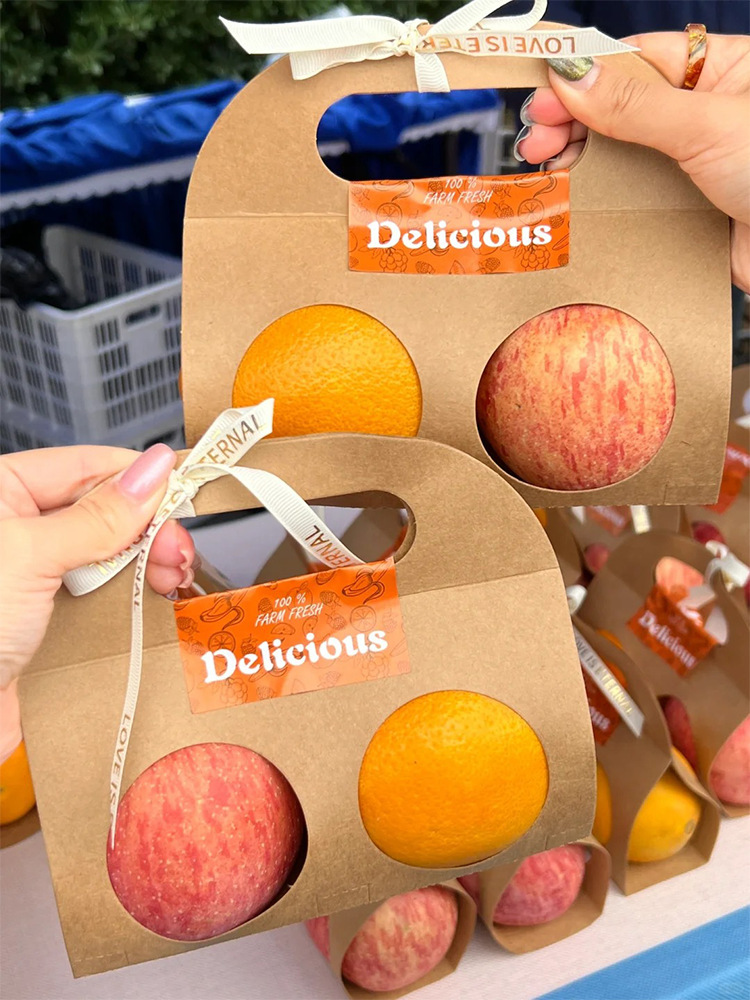フルーツ包装箱オレンジアップルオレンジピーチシングルおよびダブルポータブル原色クラフト紙包装袋ユニバーサル