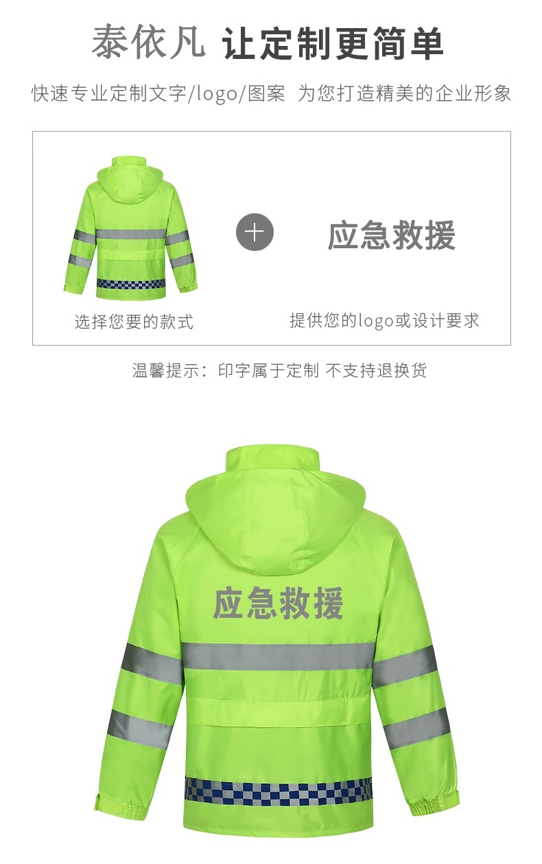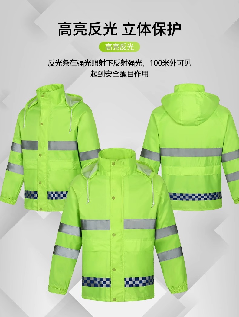 長袖全身防雨反射材付き長風雨対策防潮パトロール屋外一体型防水雨服(勤務用)