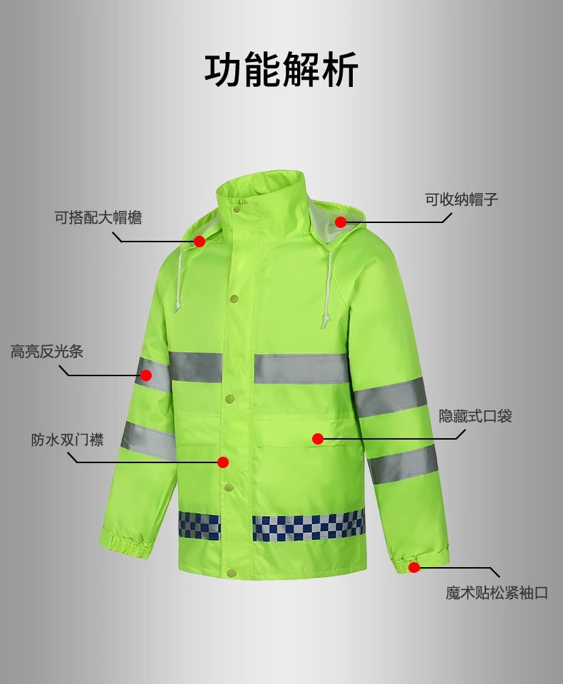 レインコート、ロングウインドブレーカー、防雨コート、拡張セキュリティプロパティ、労働保護、洪水防止、反射大人用レインコート、パトロールハイキング