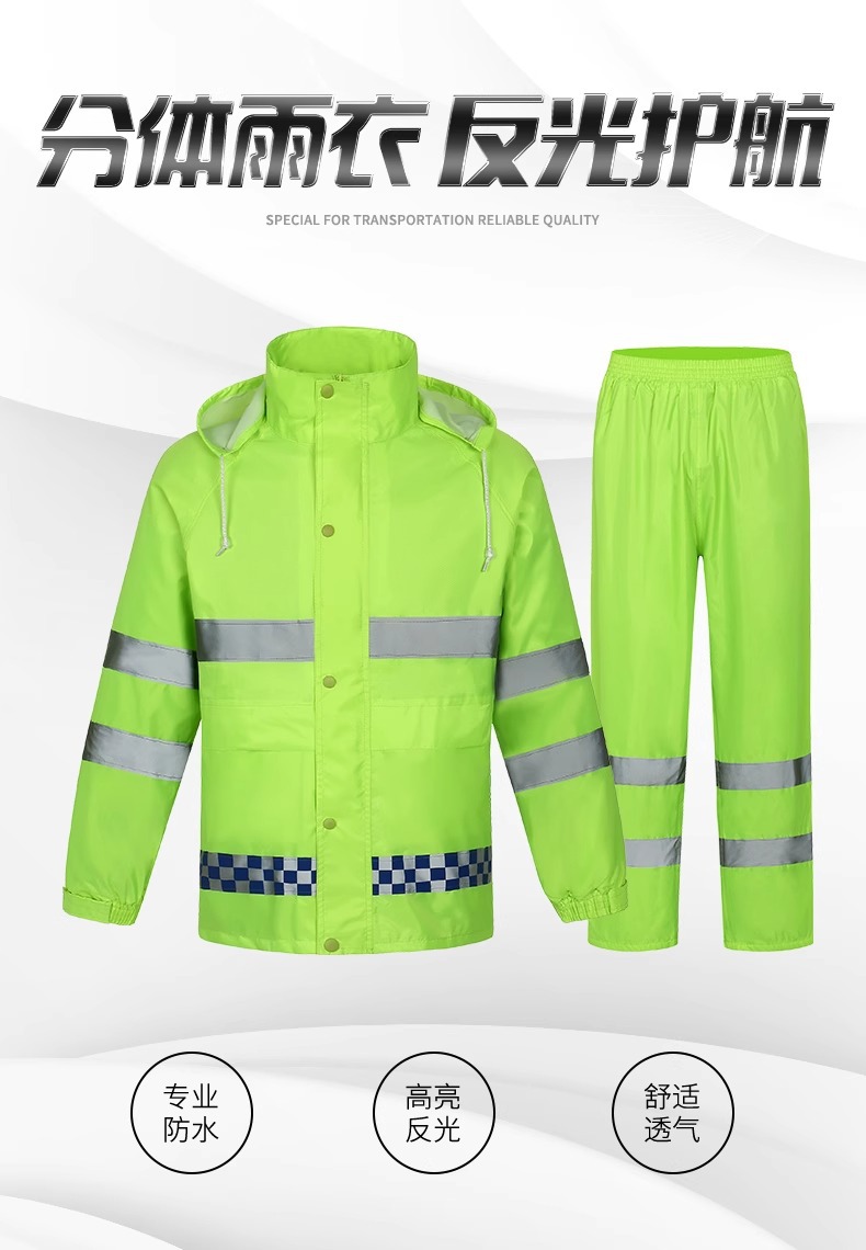 レインコートとレインパンツの分離型セット、反射材付き、交通勤務、清掃、ハイキング、アウトドア、大雨対策、工事現場、防洪、パトロール用