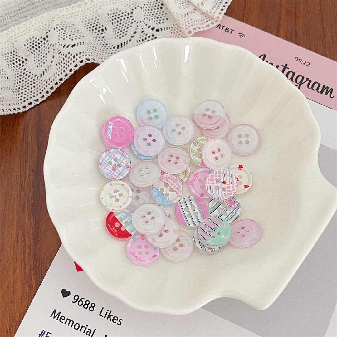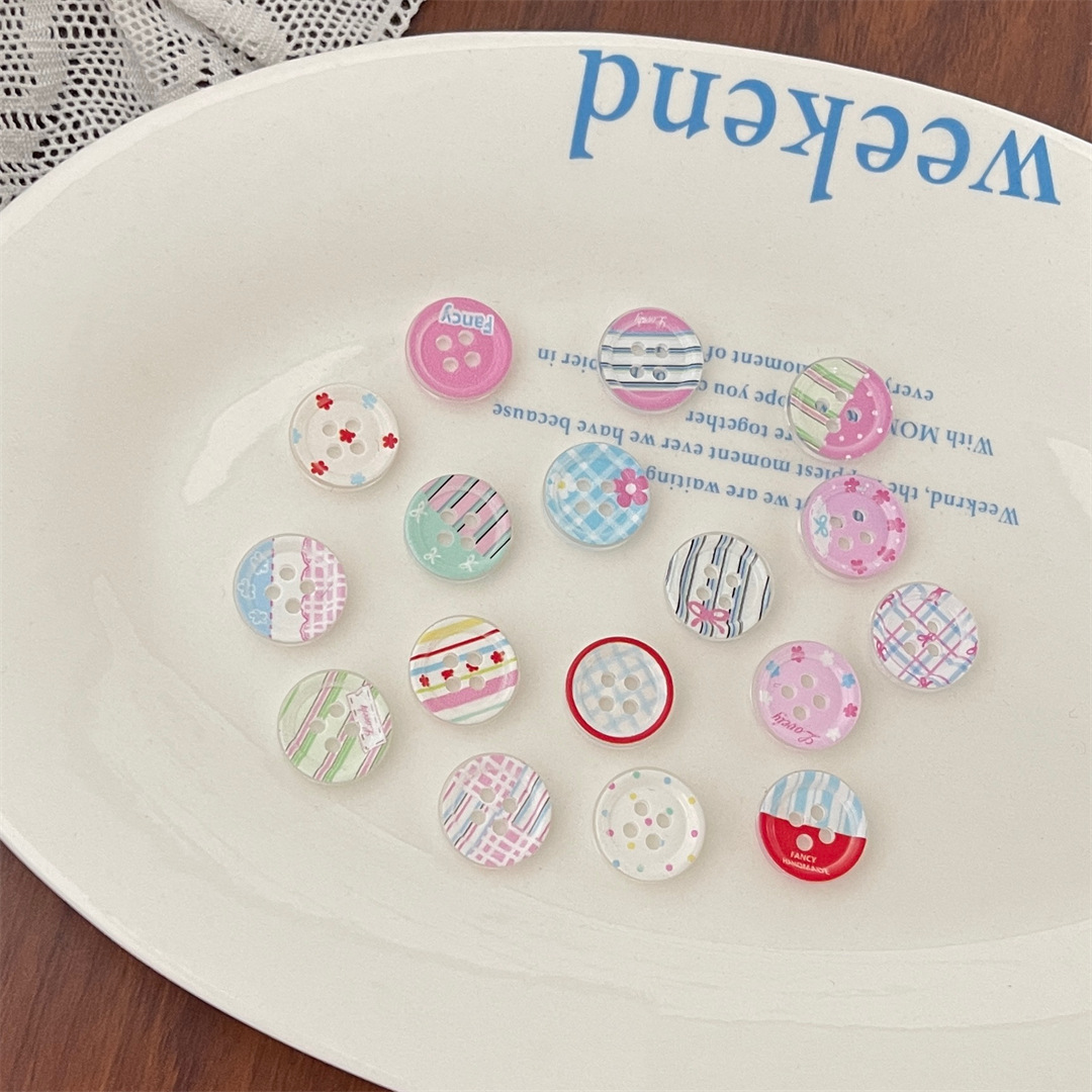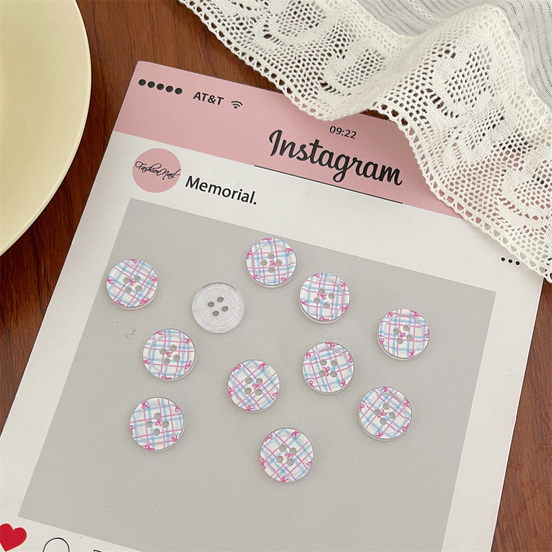 新型の格子縞の漫画のプリントの円形のボタンの春夏のdiyの服装の靴の靴下は携帯電話のカバーの部品を飾ります。
