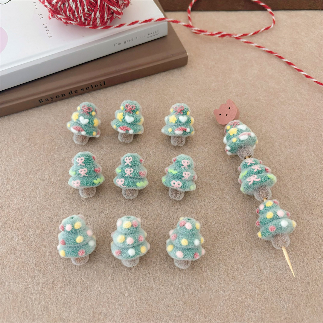 植绒立体手绘波点爱心蝴蝶结圣诞树散珠DIY手工串珠串笔饰品配件