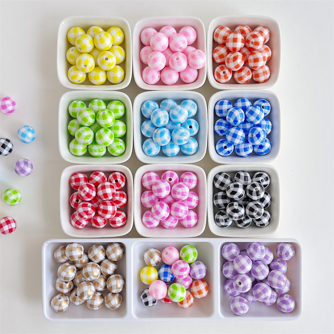 アクリル16mm千鳥格珠布紋円珠携帯チェーンかわいいアニメDIYビーズアクセサリー