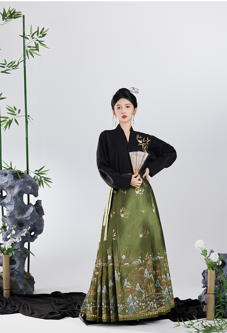 Xiyuji オリジナル [Xifengting] 明製漢服飛行機袖模造花馬面スカート中国風新中国風女性の春と秋