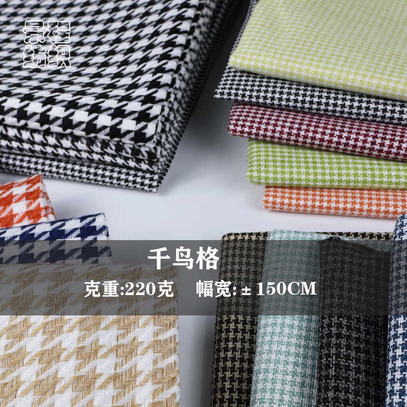 千鸟格色织提花面料箱包鞋材车套坐垫抱枕套沙发布料多色现货批发
