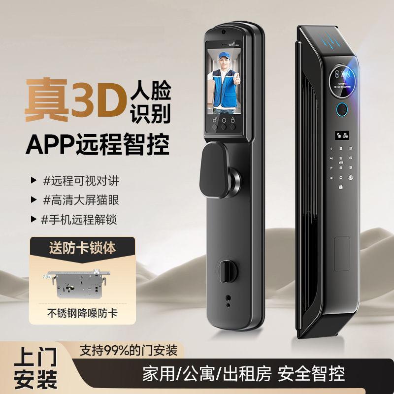 3D人脸识别指纹锁可视猫眼智能门锁防盗全自动密码锁家用入户门锁