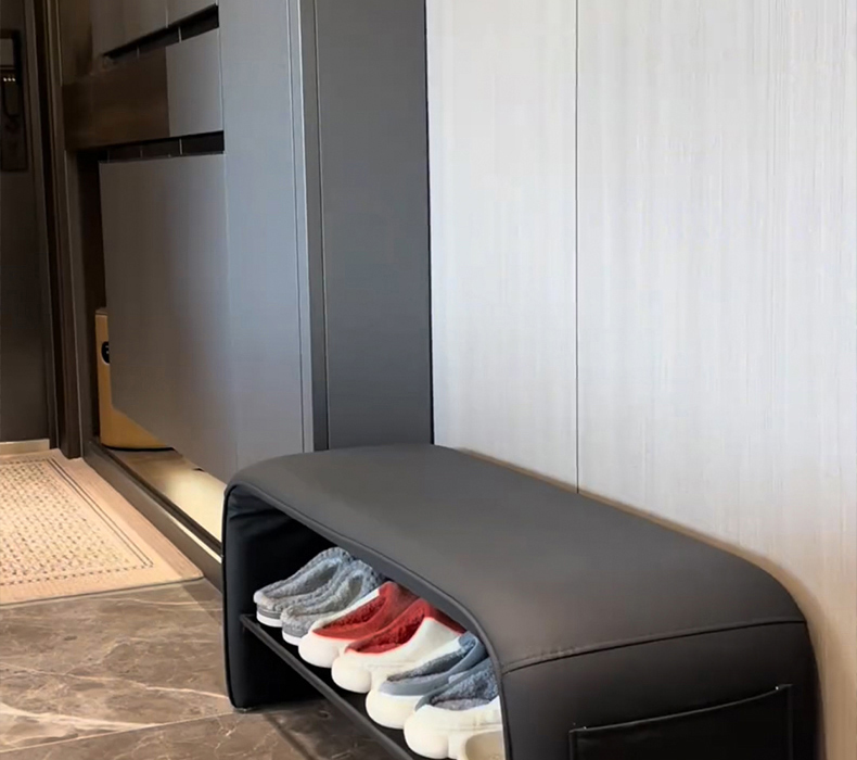 玄関靴交換スツール、玄関ホームロングスツール、靴スツール、下駄箱一体型玄関スツール、軽量高級ベッドエンドスツール