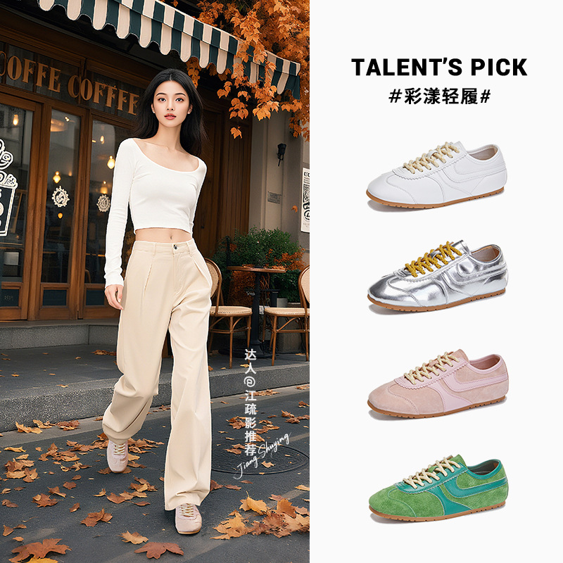 ウラ草豚革インソールレトロ本革ドイツ訓練靴女性用2026春新作スポーツスニーカーカジュアルフォーリエシューズ