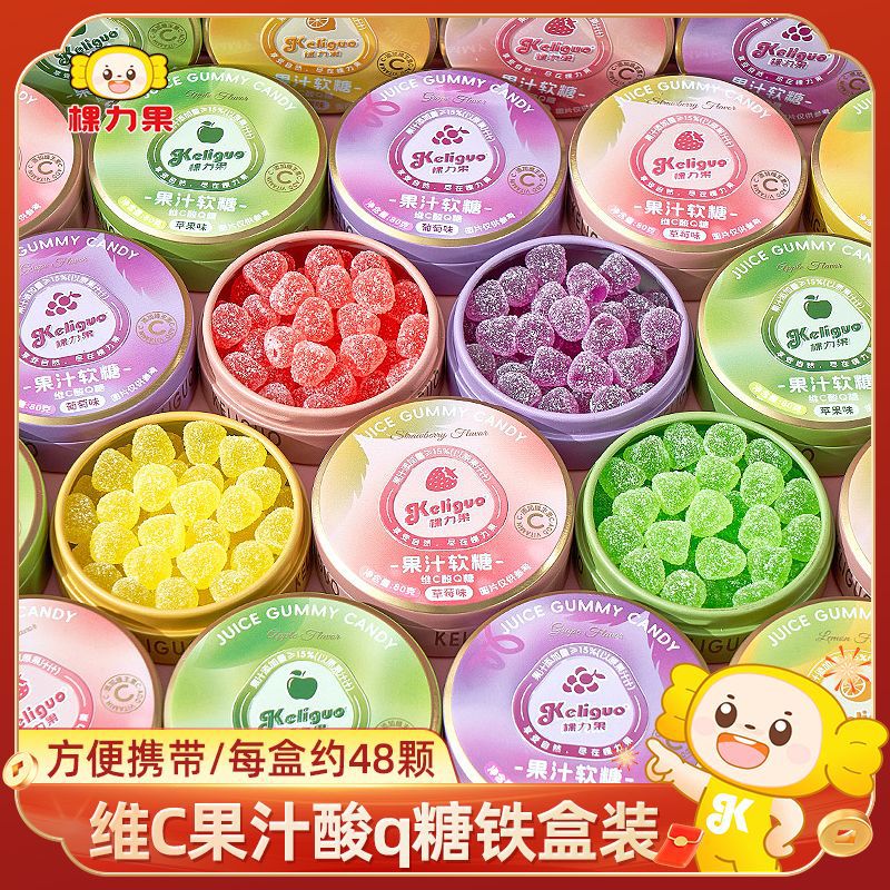 棵力果维C果汁酸q糖铁盒装qq糖酸砂软糖便携糖果盒随身携带小零食