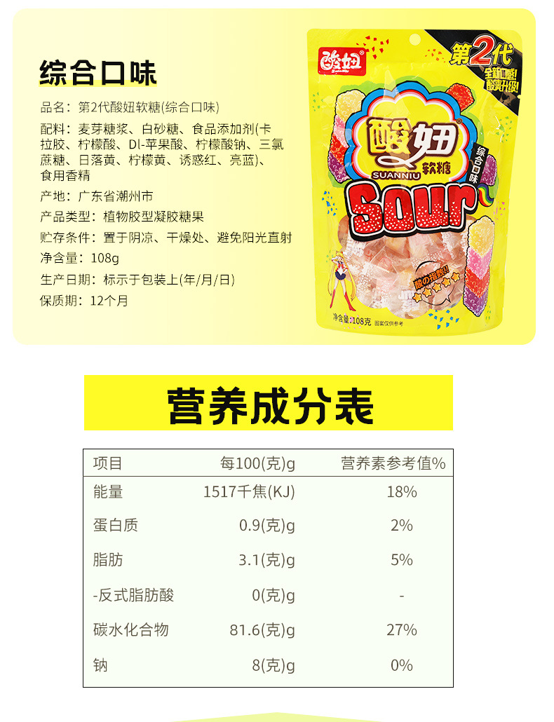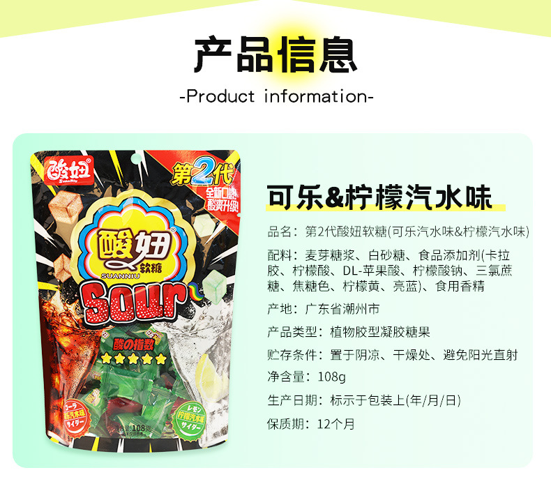 酸妞软糖酸甜儿童90后怀旧小时候5毛学生零食品小吃儿时糖果奖励
