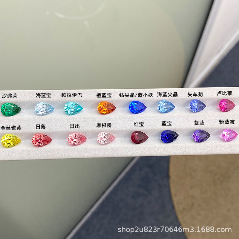 培育宝石梨形/水滴形彩色提拉法实验裸石批发戒指配石珠宝