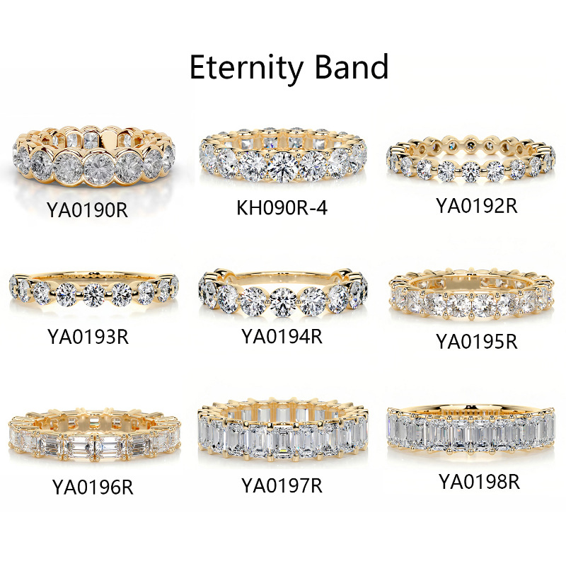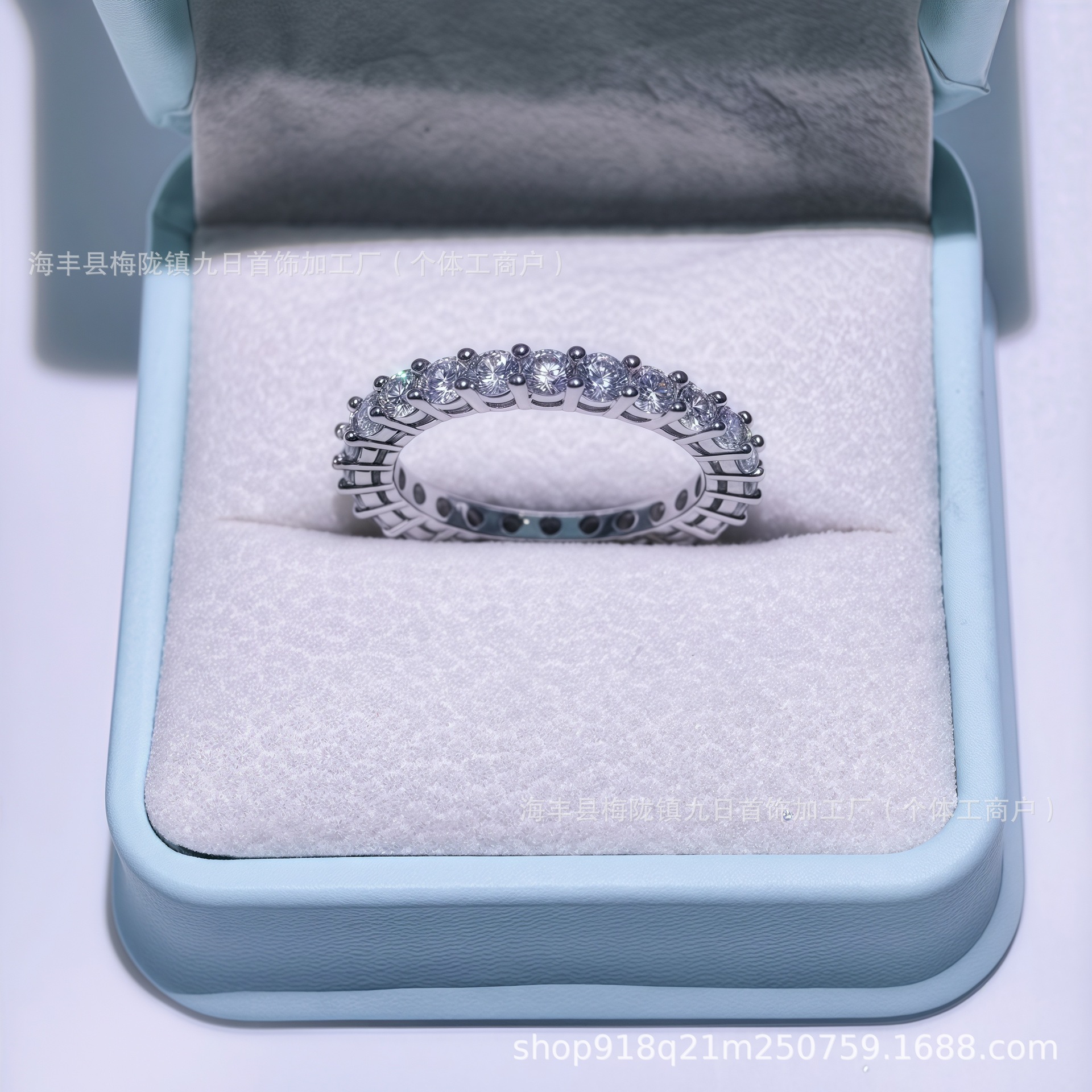 跨境爆款10/20/30/50分满镶排戒叠戴时尚s925银镶嵌莫桑石戒指女