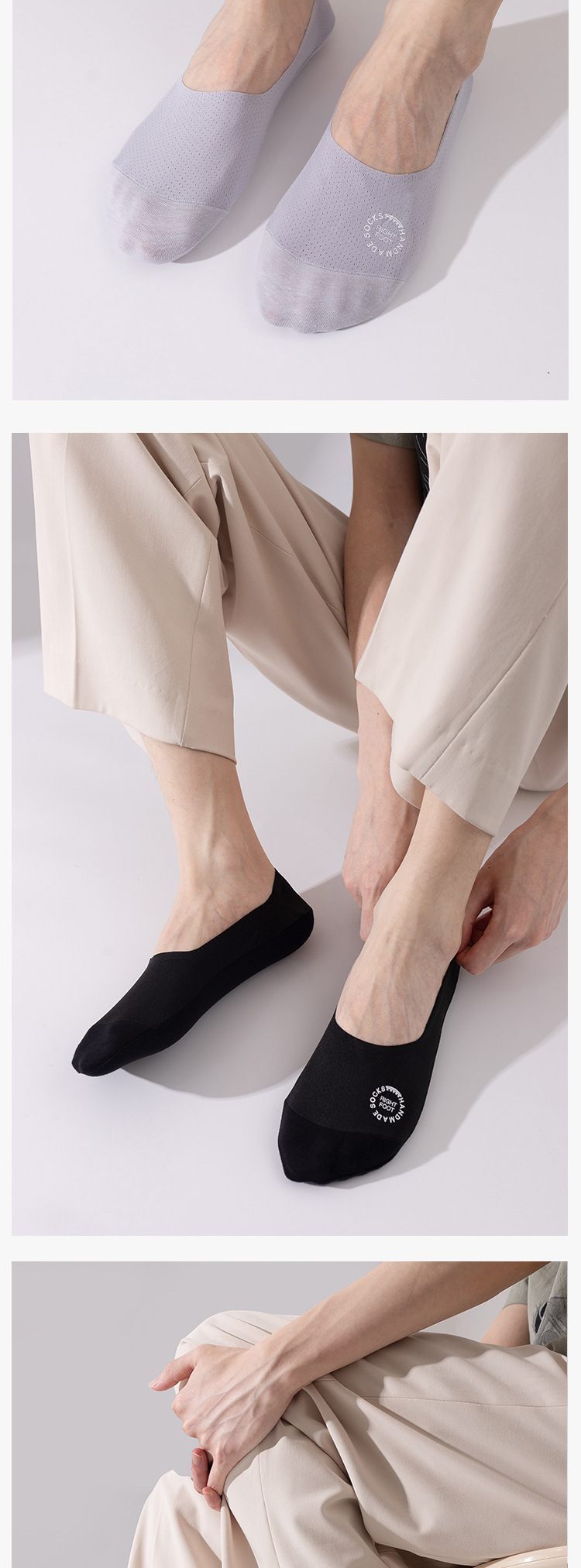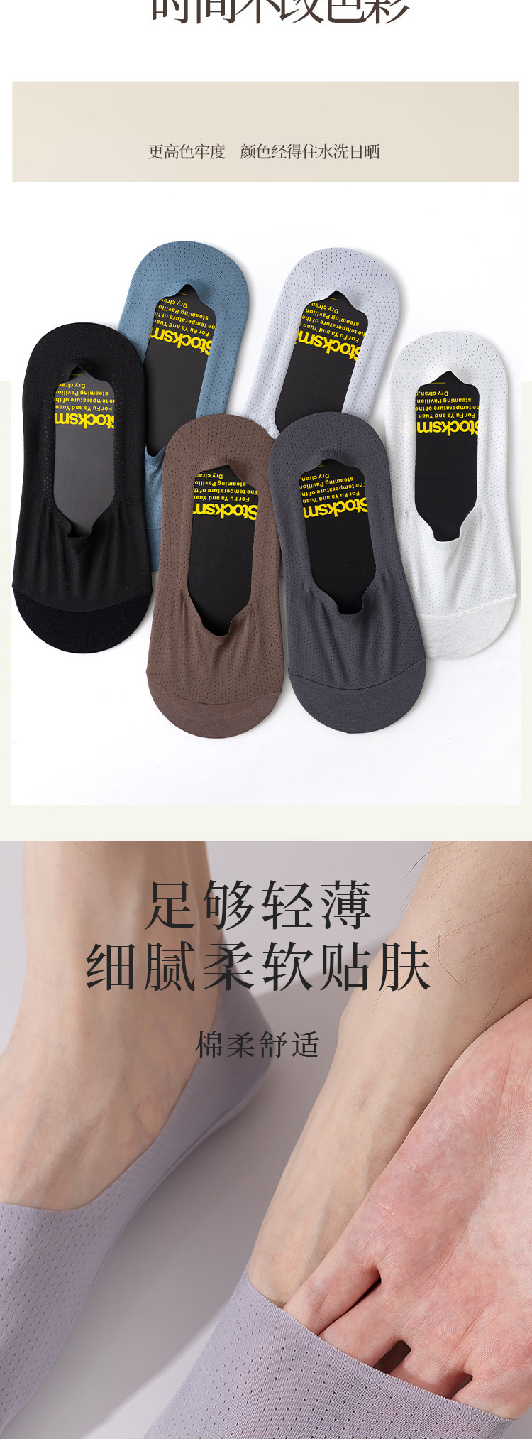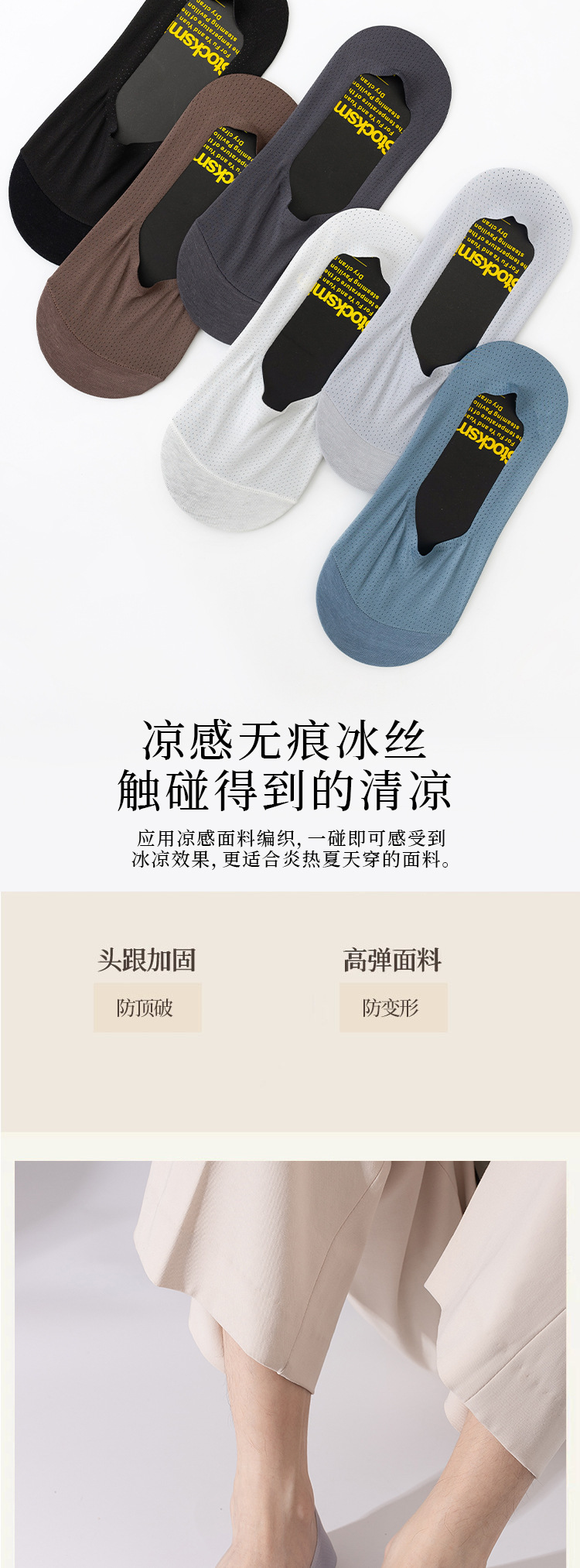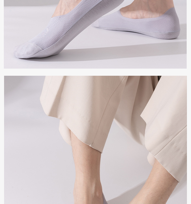 高級男性靴下男性夏の薄いメッシュ通気性ステルス綿底吸汗防臭滑り止めは靴下と落ちない