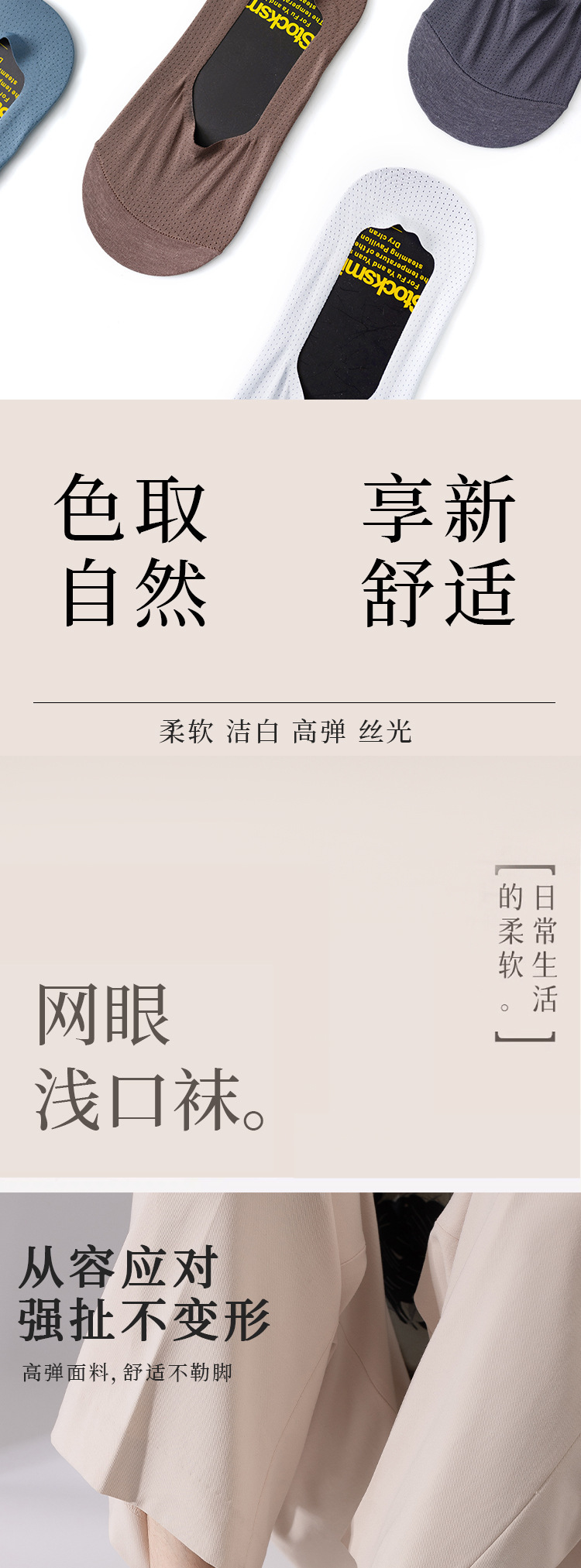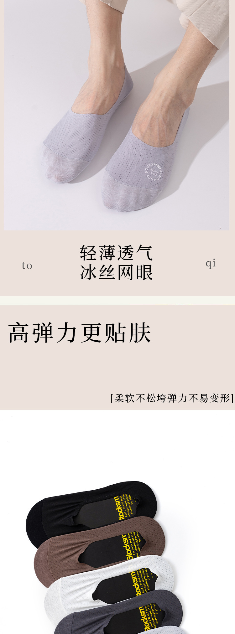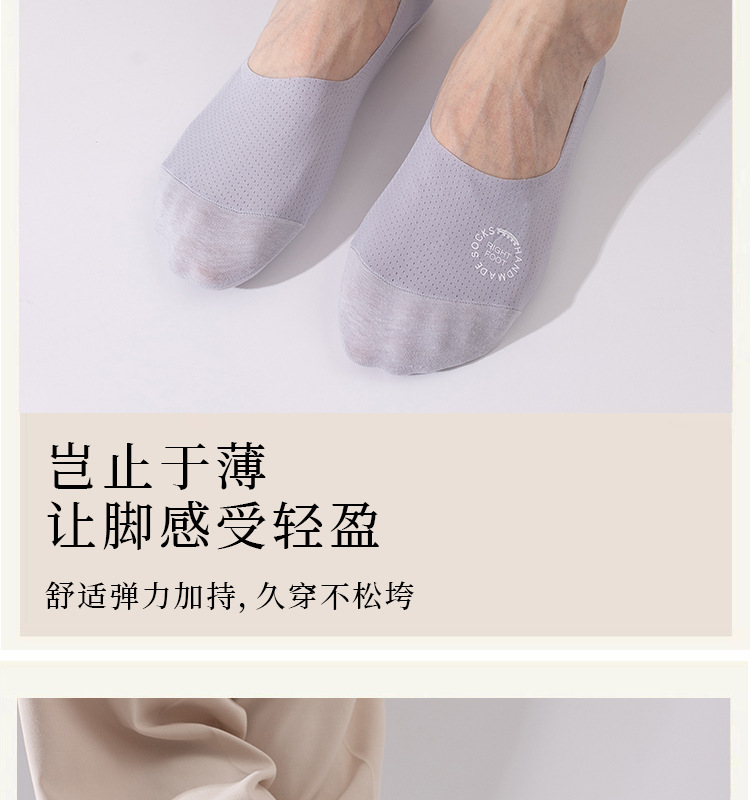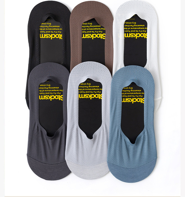 目の穴の氷のシルクの靴下の男性の夏の超薄型のネットの目の通気性の防臭のシリカゲルの滑り止めのステルスはショートソックスと落ちません。