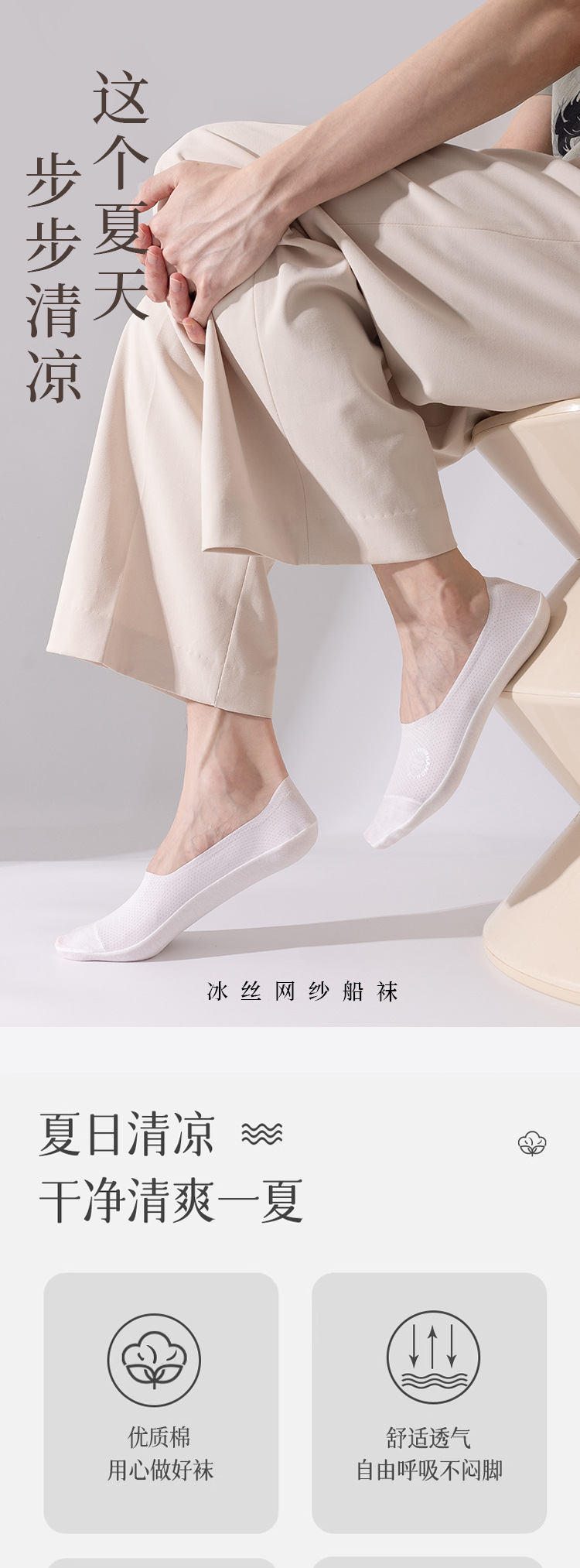 夏の氷糸網穴ソックス男性靴下靴下薄手氷糸通気春ソックス目綿底滑り止め靴下
