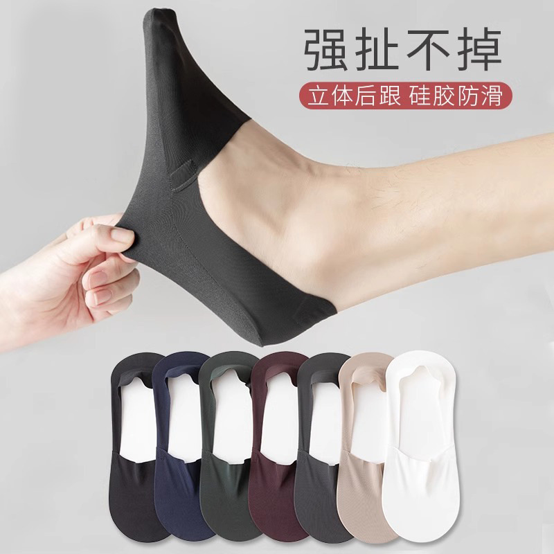 男性用春夏アイスシルクボートソックス、シリコン製脱落防止インビジブルソックス、男性用薄手コットンタオル底吸汗性ボートソックス