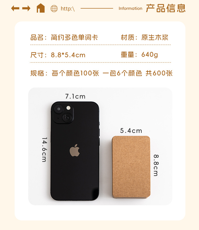空白手写卡片纸牛皮英语单词硬卡纸便携环扣长方形记忆小卡片批发