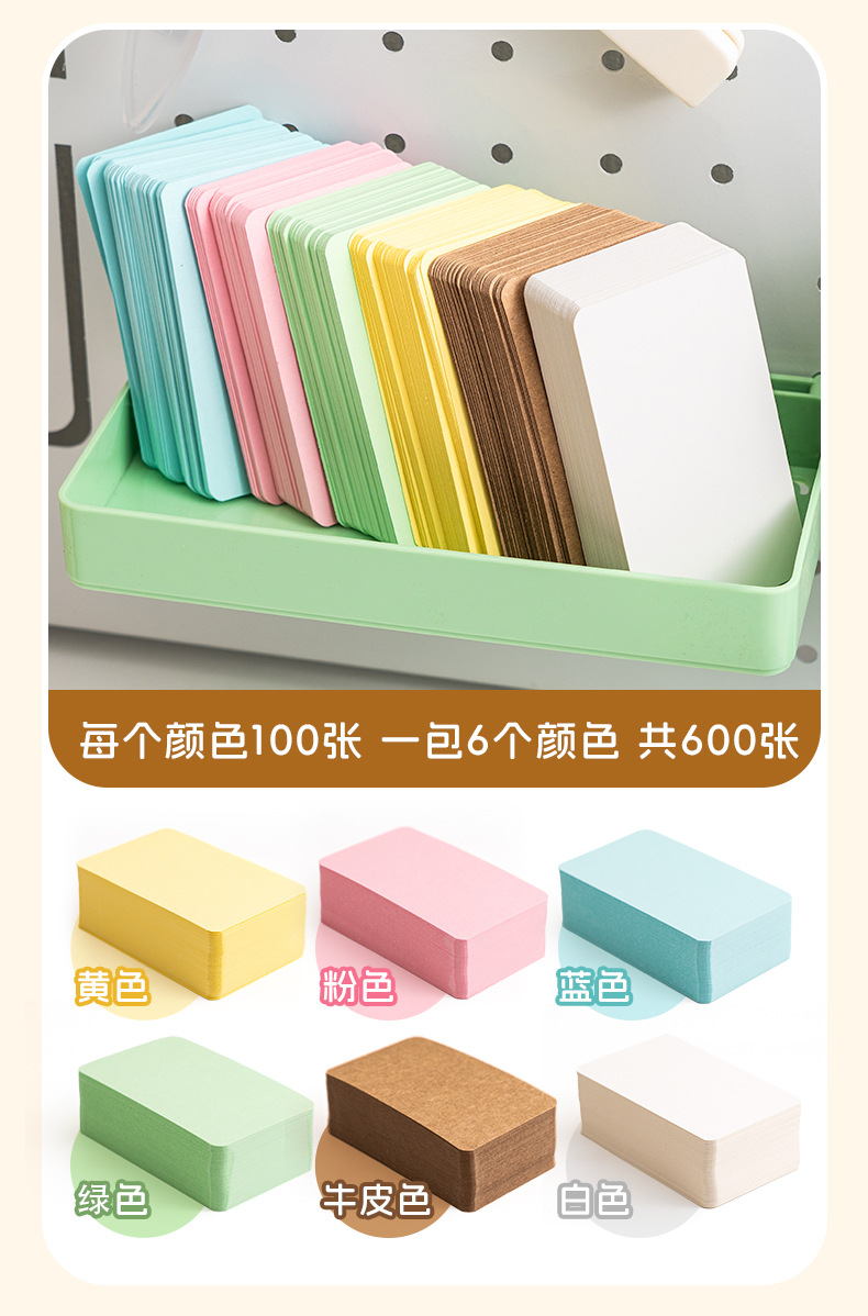 空白カード紙手書きカラー英語単語硬質紙小カード伝言携帯記憶カード