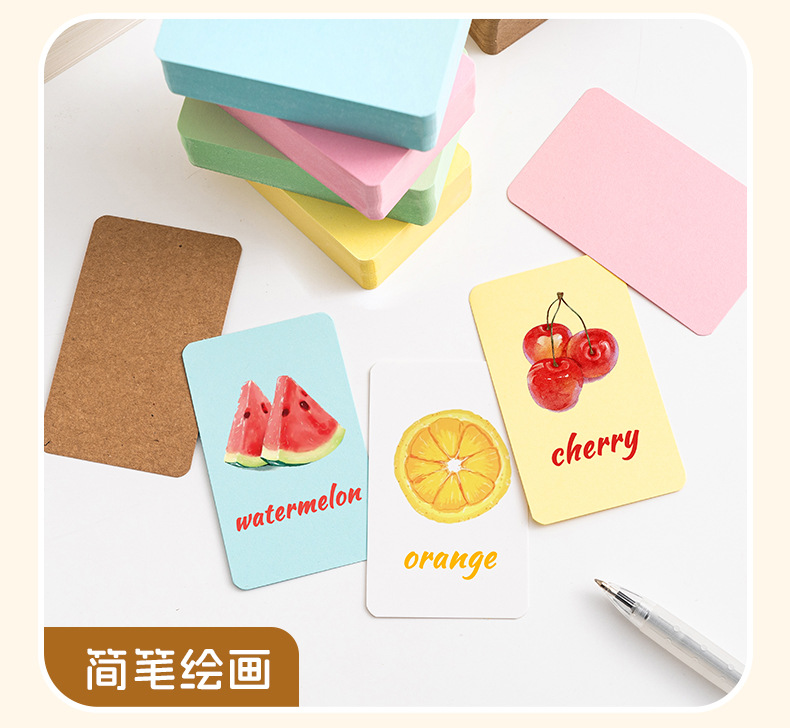 空白卡片diy涂鸦生字拼音小卡片圆角牛皮英语单词卡留言硬卡片纸