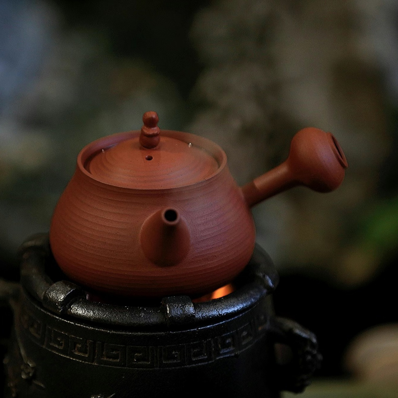 レトロな火炭炉で茶炉を煮ます。