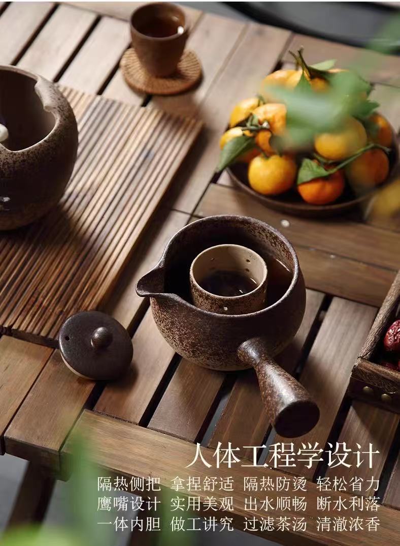 粗陶器ティーポット、セラミックサイドハンドルポット、小青柑プーアル茶、紅茶ティーポット、炉囲みティーポット