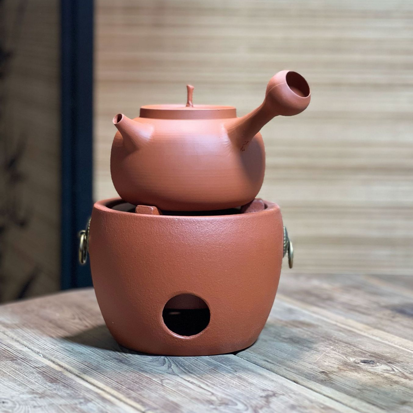 陶磁器煮茶器缶茶煮急須側は壺黒茶炭茶炉を囲みます。