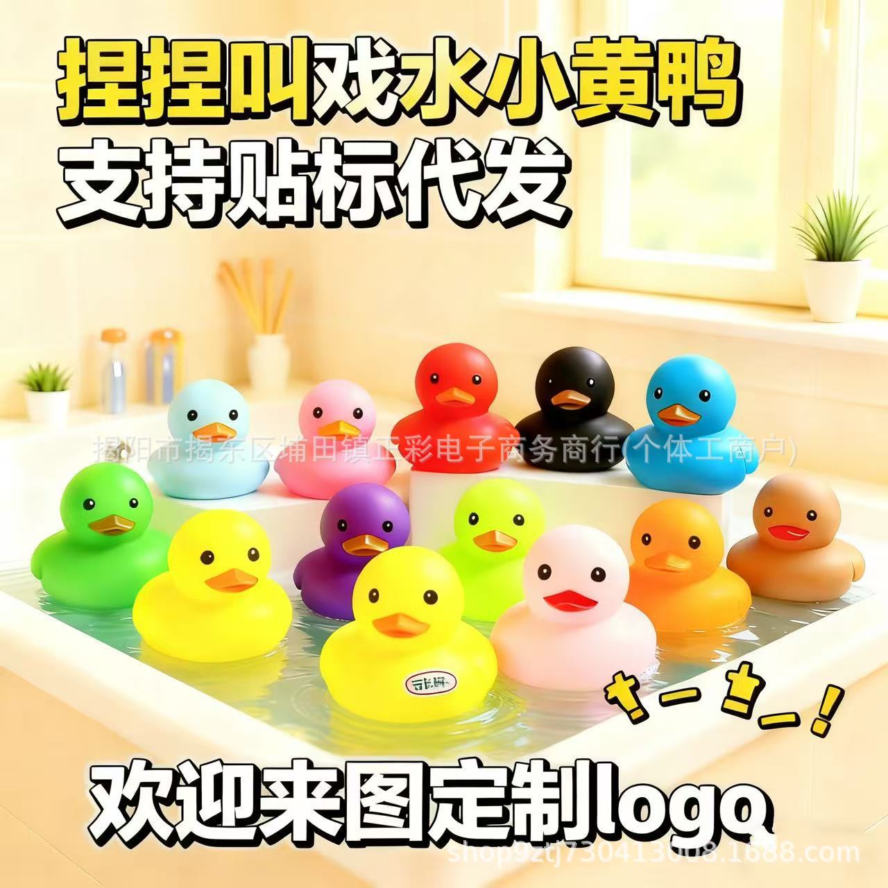 金粉小黄鸭戏水洗澡捏捏叫发声玩具游泳池浴室鸭子奶茶店礼品玩偶