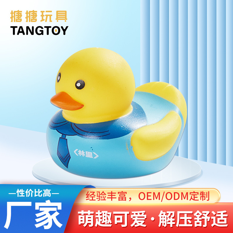 子供向け漫画風お風呂用ゴム製黄色いアヒルのおもちゃ、赤ちゃん用水遊び用、握って音が出る動物、屋台の玩具メーカー