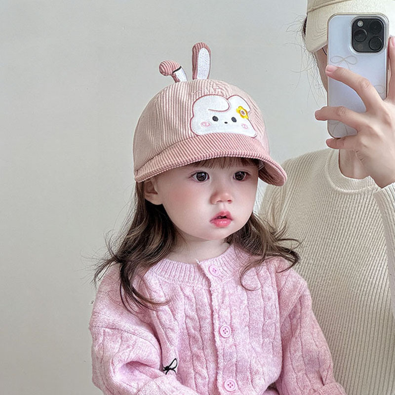 儿童帽子秋冬季灯芯绒兔耳朵男女宝宝鸭舌帽大帽檐婴儿出游遮阳帽