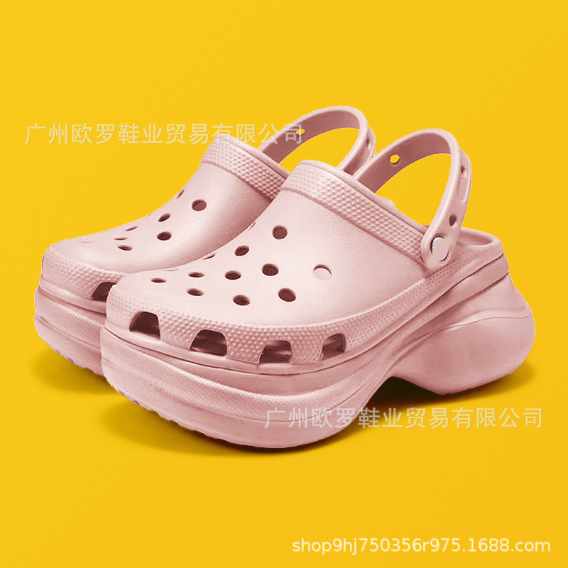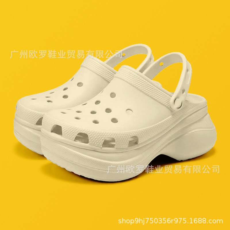 クロスシュークリーム迷彩プリント洞靴女性の厚い底が高くなりました。ビーチ靴滑り止めスリッパ洞外はサンダルを履いています。