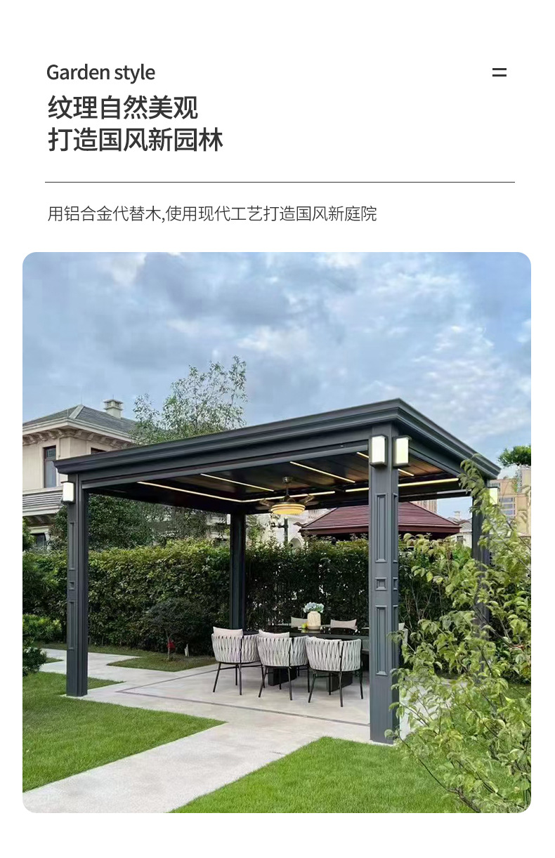 凉亭屋外庭園アルミニウム合金花園四角凉亭新中国式現代別荘庭電動レジャー亭